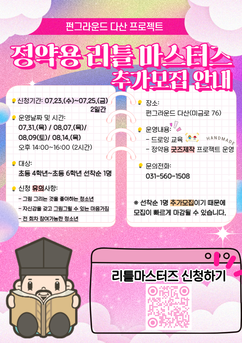 | 프로그램명 | (네이버폼 추접수) 다산프로젝트: 정약용 리틀 마스터즈 추가 모집 안내 |