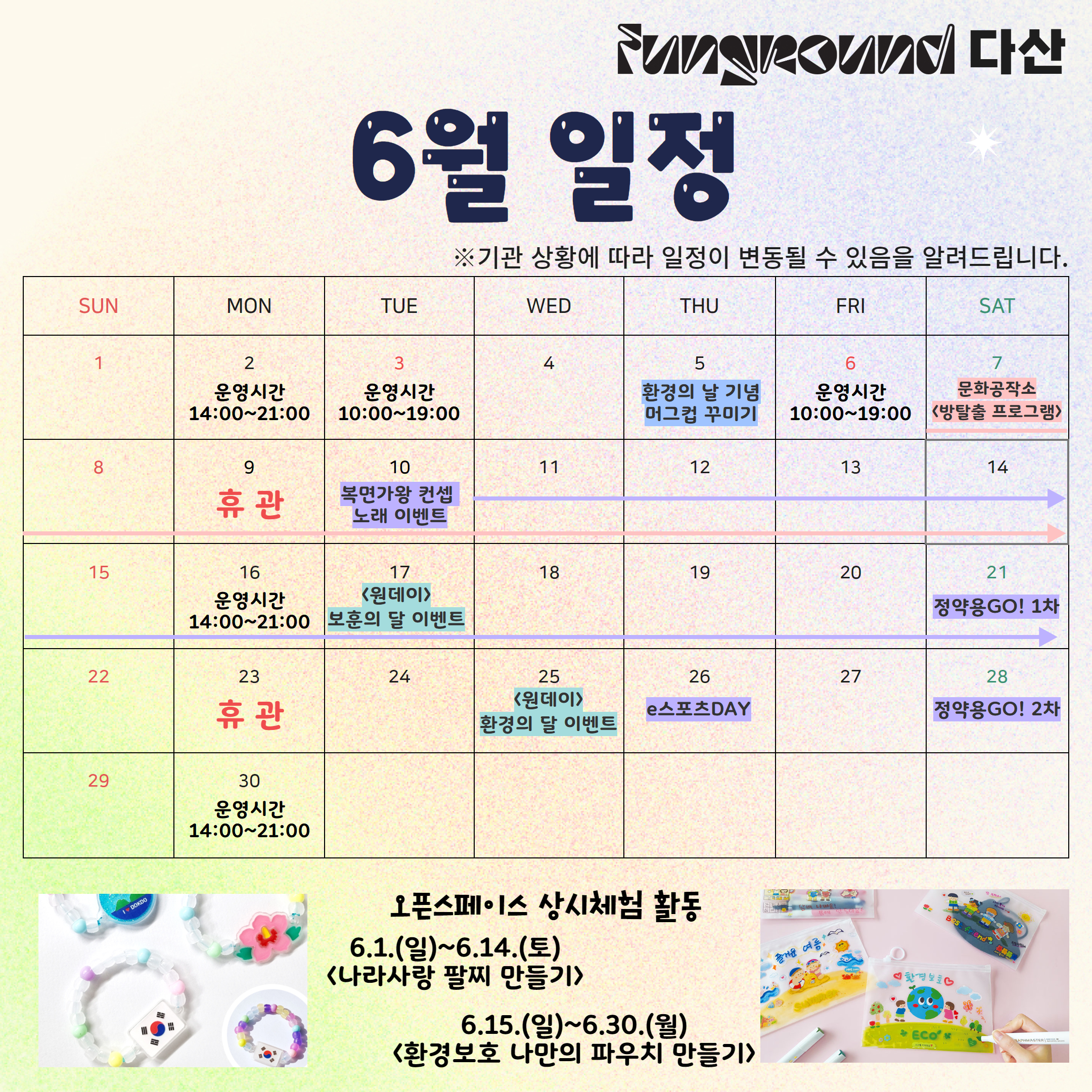 - 6/1(일) ~ 6/14(토) 나라사랑 팔찌 만들기