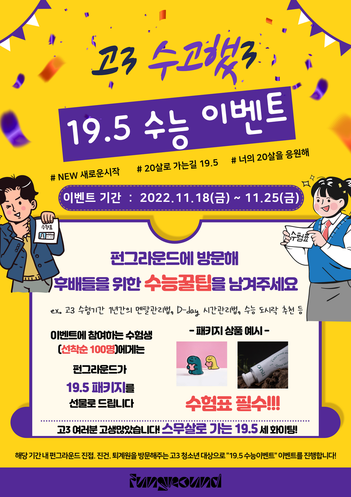 진건 펀그라운드 진건 ❤️고3 수고했3❤️19.5 수능 이벤트! 작성자 펀그라운드 퇴계원 등록일자 2022년 11월 16일 18시 6분 59초 조회 361 KakaoTalk_20221116_141216099.png [ Size : 778.73KB, Down : 159 ] 미리보기 다운로드 목록보기
