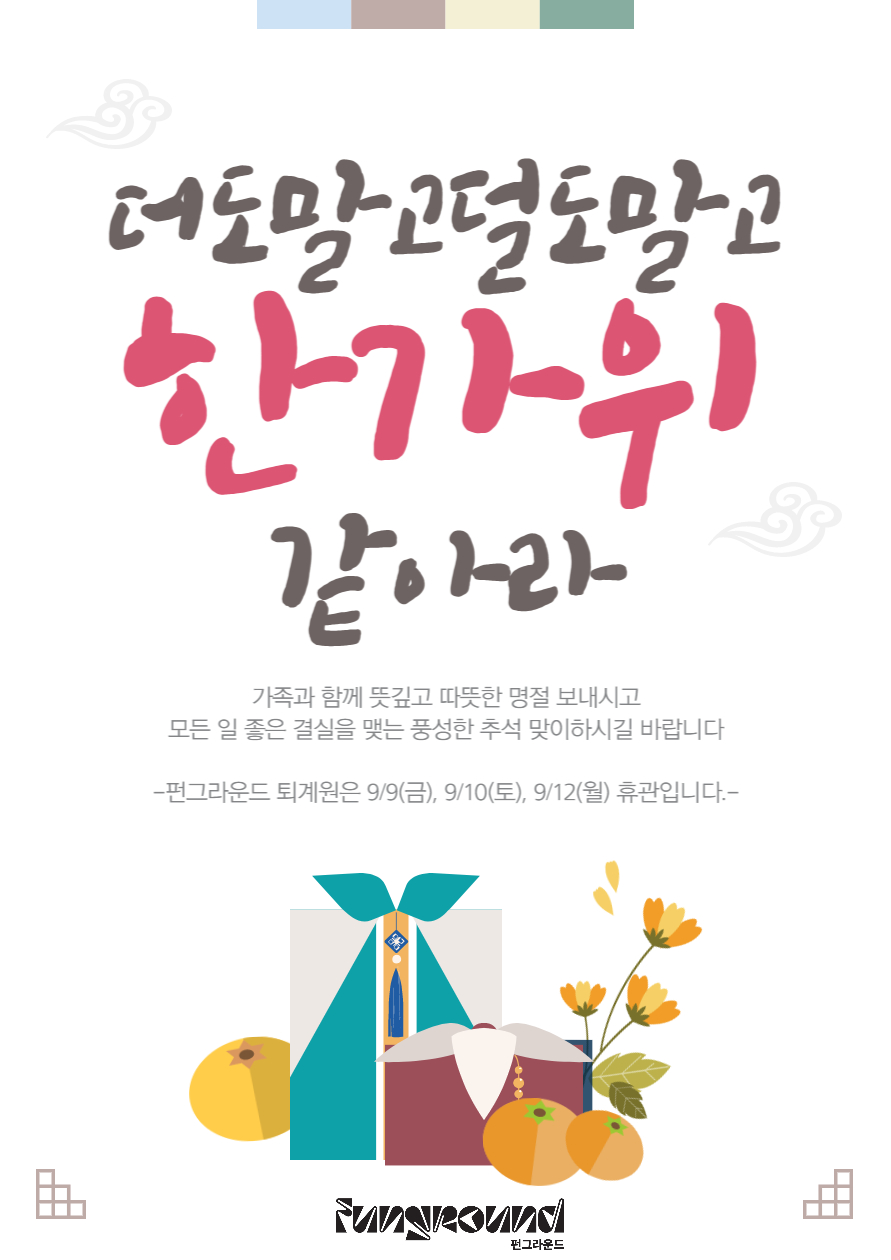 퇴계원 펀그라운드 퇴계원 친구들 보름달처럼 넉넉한 한가위 보내세요! 작성자 펀그라운드 퇴계원 등록일자 2022년 9월 7일 16시 25분 26초 조회 372 제목을 입력해주세요_-001 (7).jpg [ Size : 272.52KB, Down : 154 ] 미리보기 다운로드 목록보기