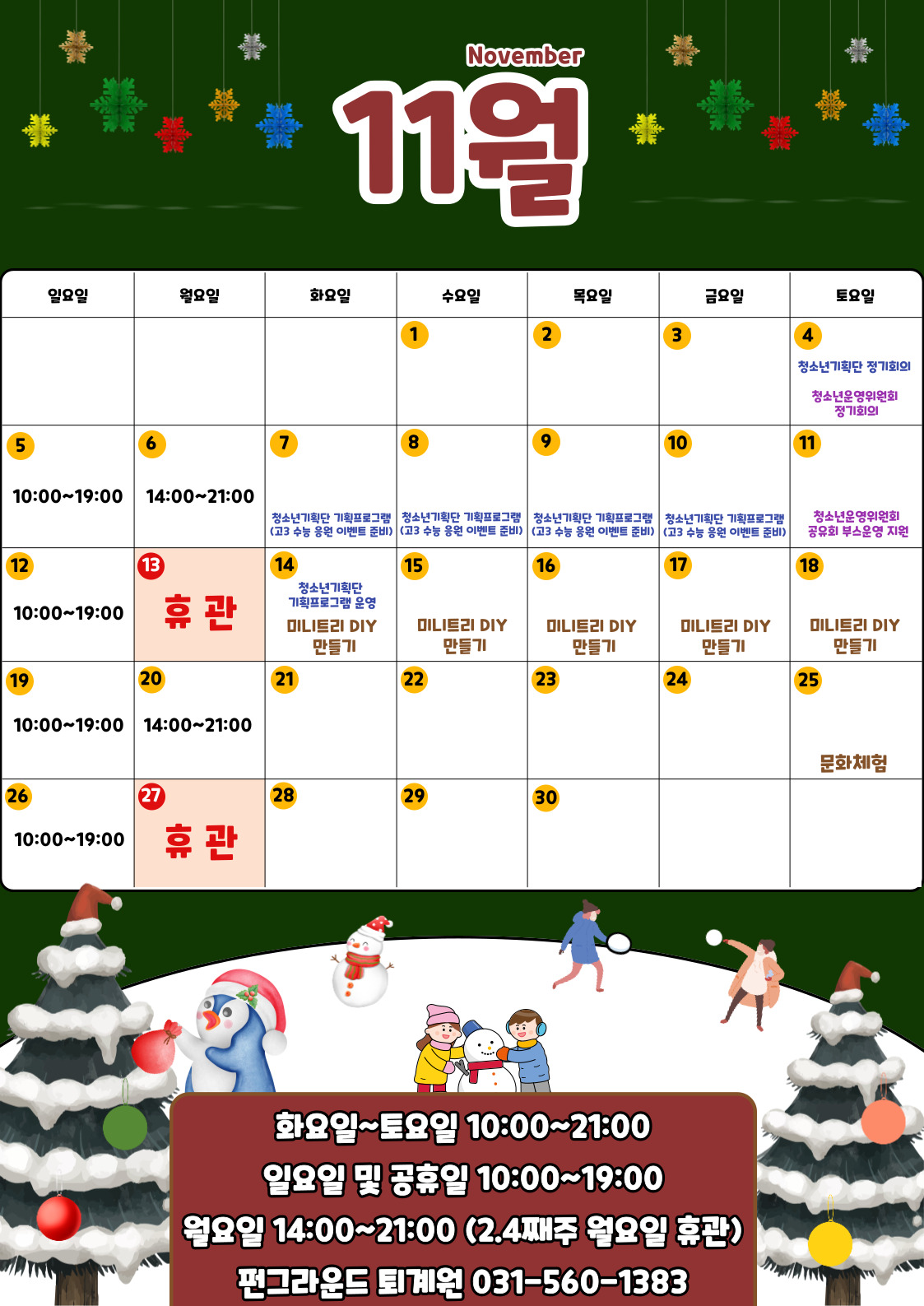 < 펀그라운드 퇴계원 11월 프로그램 일정 안내 >