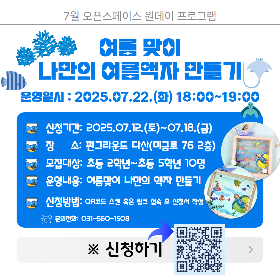이번 7월, 펀그라운드 다산에서 특별한 원데이 프로그램을 준비했답니다! 바로 '여름맞이 액자 만들기'!