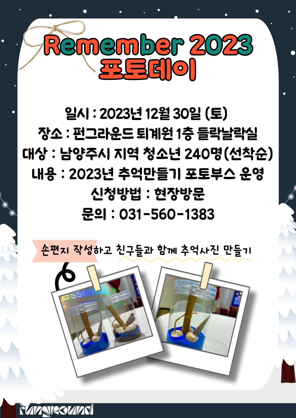 퇴계원 [펀그라운드 퇴계원] 12월 문화체험(Remember 2023) 프로그램 안내