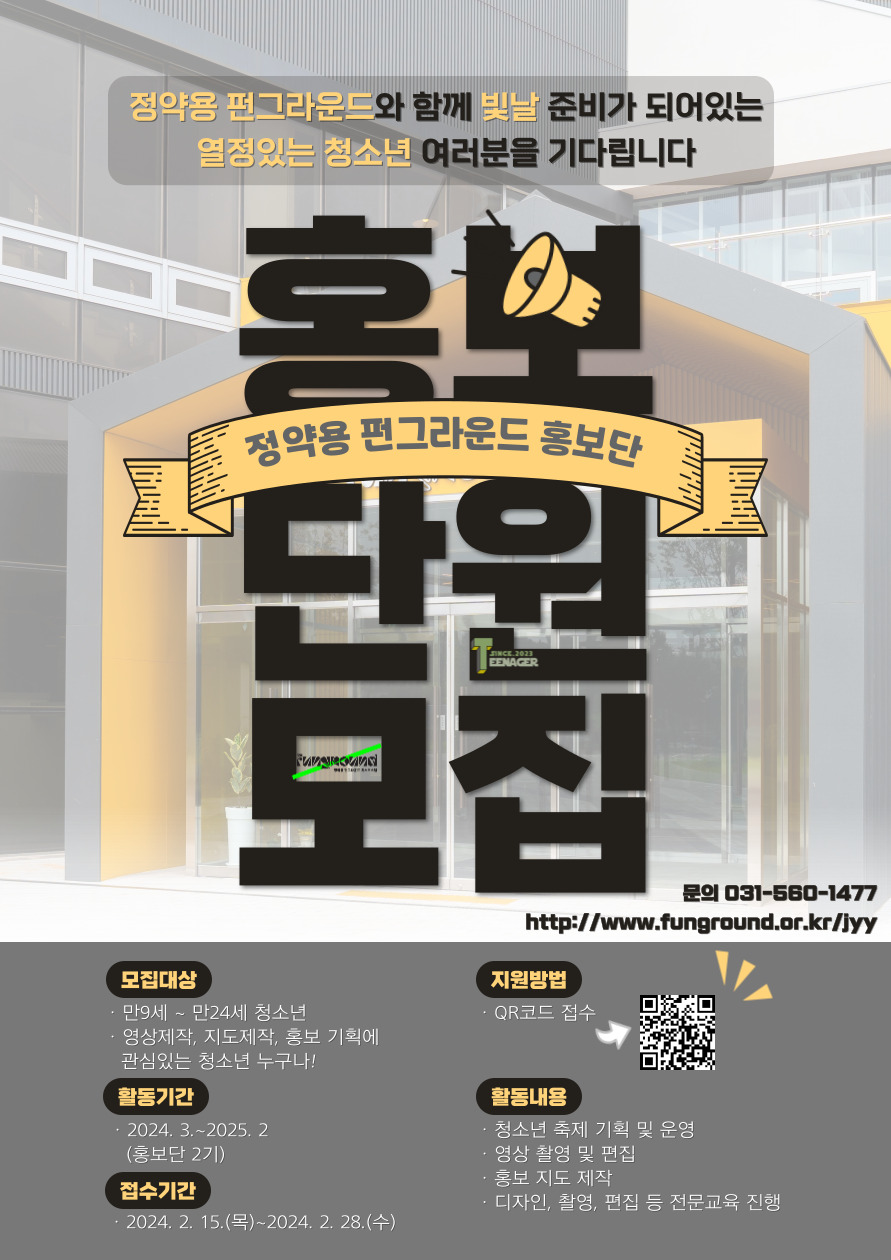 정약용 [모집] 2024년 정약용 펀그라운드 청소년 홍보단 모집 작성자 펀그라운드정약용 등록일자 2024년 2월 15일 18시 54분 29초 조회 315 2024-홍보단-모집-002.jpg [ Size : 237KB, Down : 144 ] 미리보기 다운로드 목록보기
