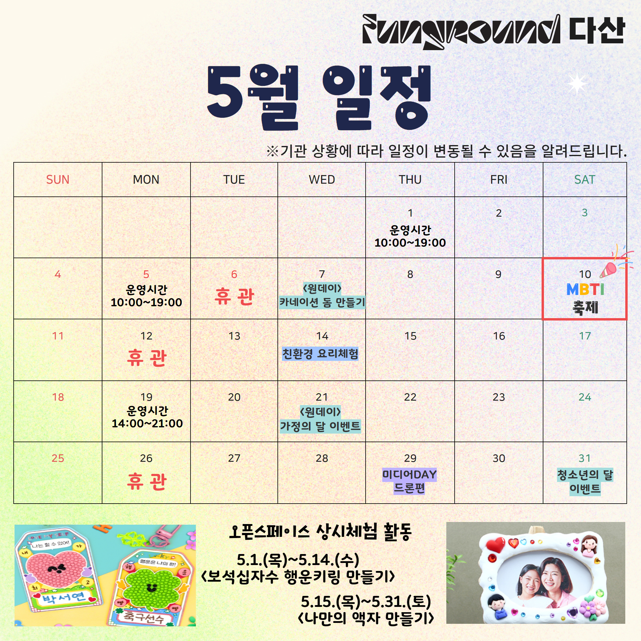 - 5/15(목) ~ 4/30(수) 나만의 액자 만들기