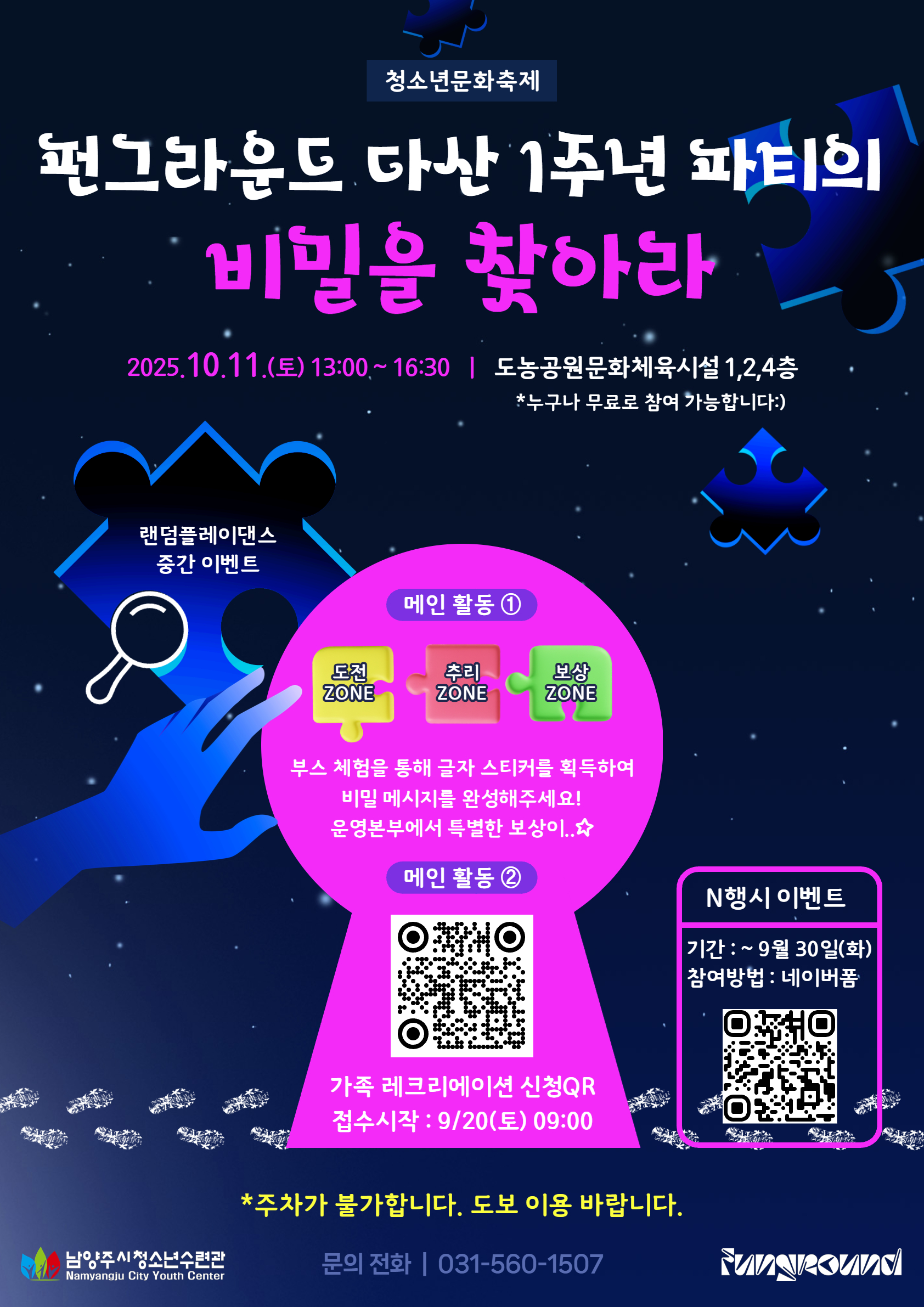 다산 [펀그라운드 다산] 10월 청소년문화축제 '펀그라운드 다산 1주년 파티의 비밀을 찾아라' 안내
