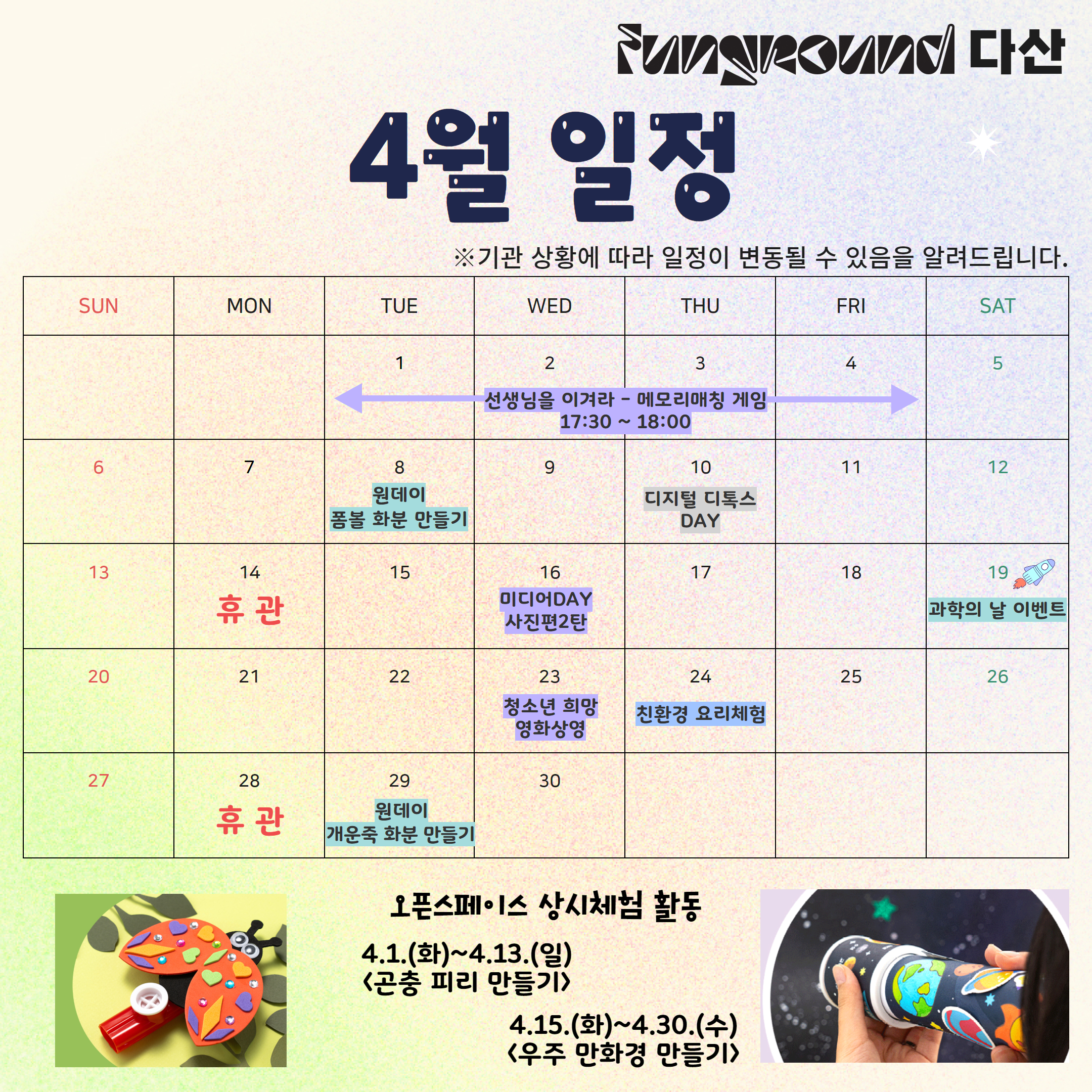 - 4/1(화) ~ 4/4(금) 선생님을 이겨라!