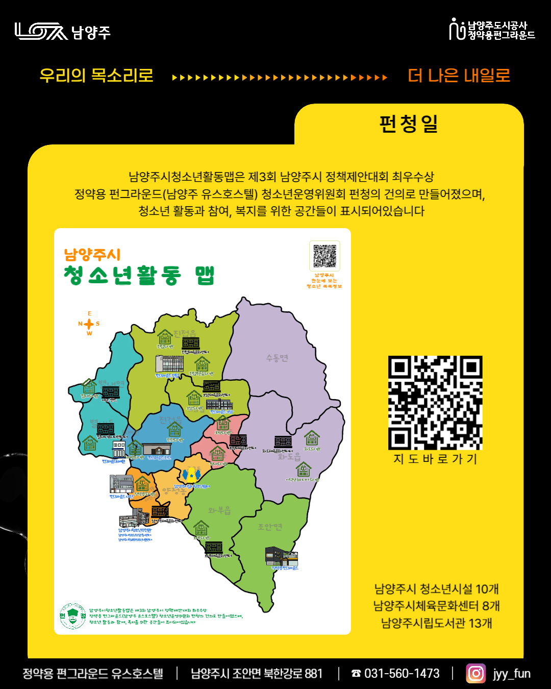 정약용 [청소년운영위원회] 남양주시 청소년활동 맵 작성자 펀그라운드정약용 등록일자 2025년 1월 9일 9시 26분 3초 조회 300 006.jpg [ Size : 240.44KB, Down : 125 ] 미리보기 다운로드 007.jpg [ Size : 220.16KB, Down : 167 ] 미리보기 다운로드 008.jpg [ Size : 233.77KB, Down : 135 ] 미리보기 다운로드 청운위(SNS 세로비율)-001 (5).jpg [ Size : 631.62KB, Down : 148 ] 미리보기 다운로드 목록보기