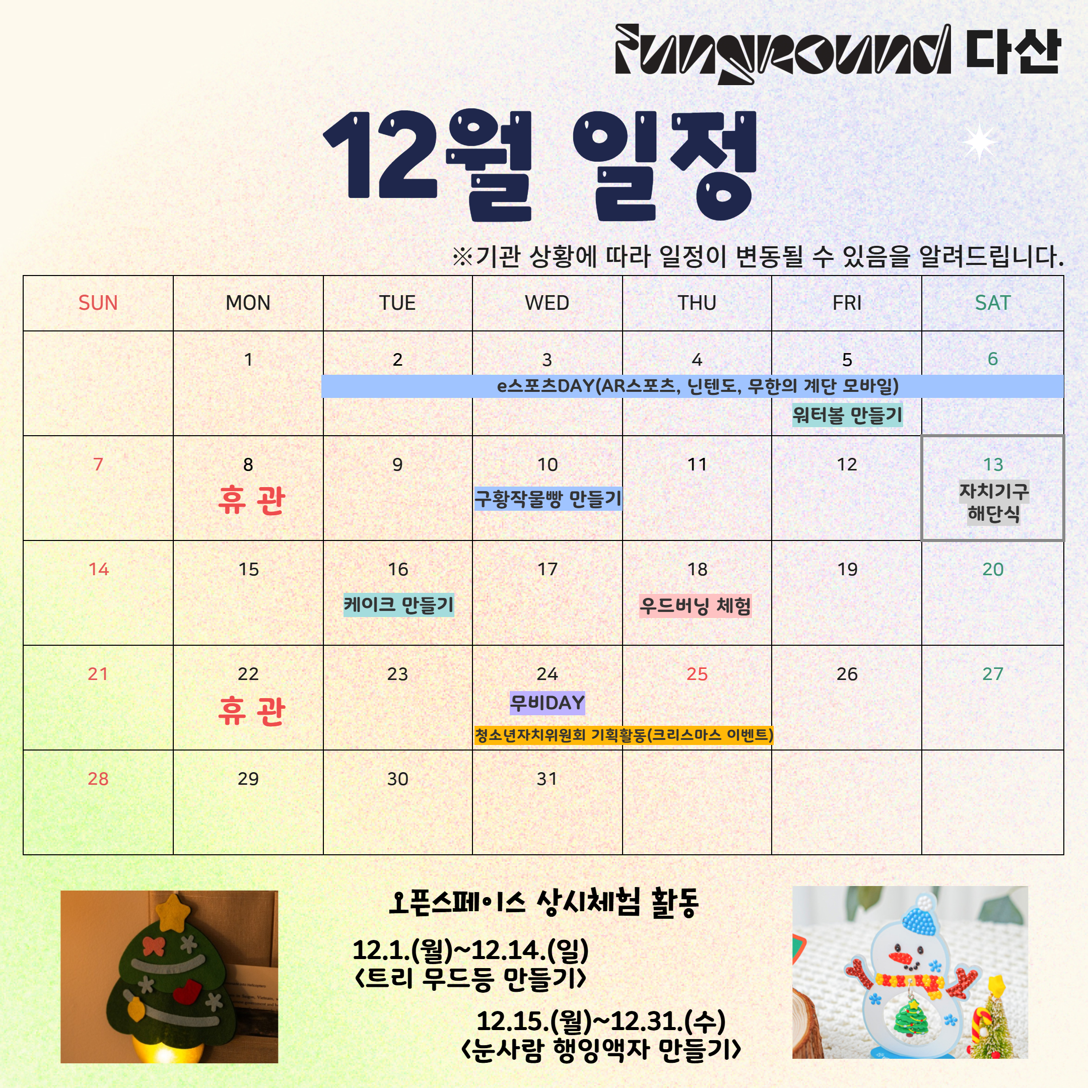 공지 다산 [펀그라운드 다산] 12월 일정 안내