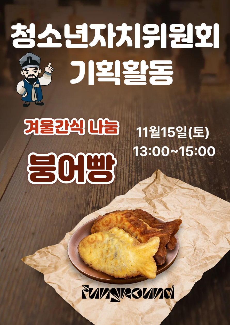 오남 [펀그라운드 오남] 청소년자치위원회 기획활동 겨울간식 나눔 붕어빵 작성자 펀그라운드진건 등록일자 2025년 11월 14일 12시 54분 39초 조회 85 붕어빵.png [ Size : 1.67MB, Down : 28 ] 미리보기 다운로드 목록보기