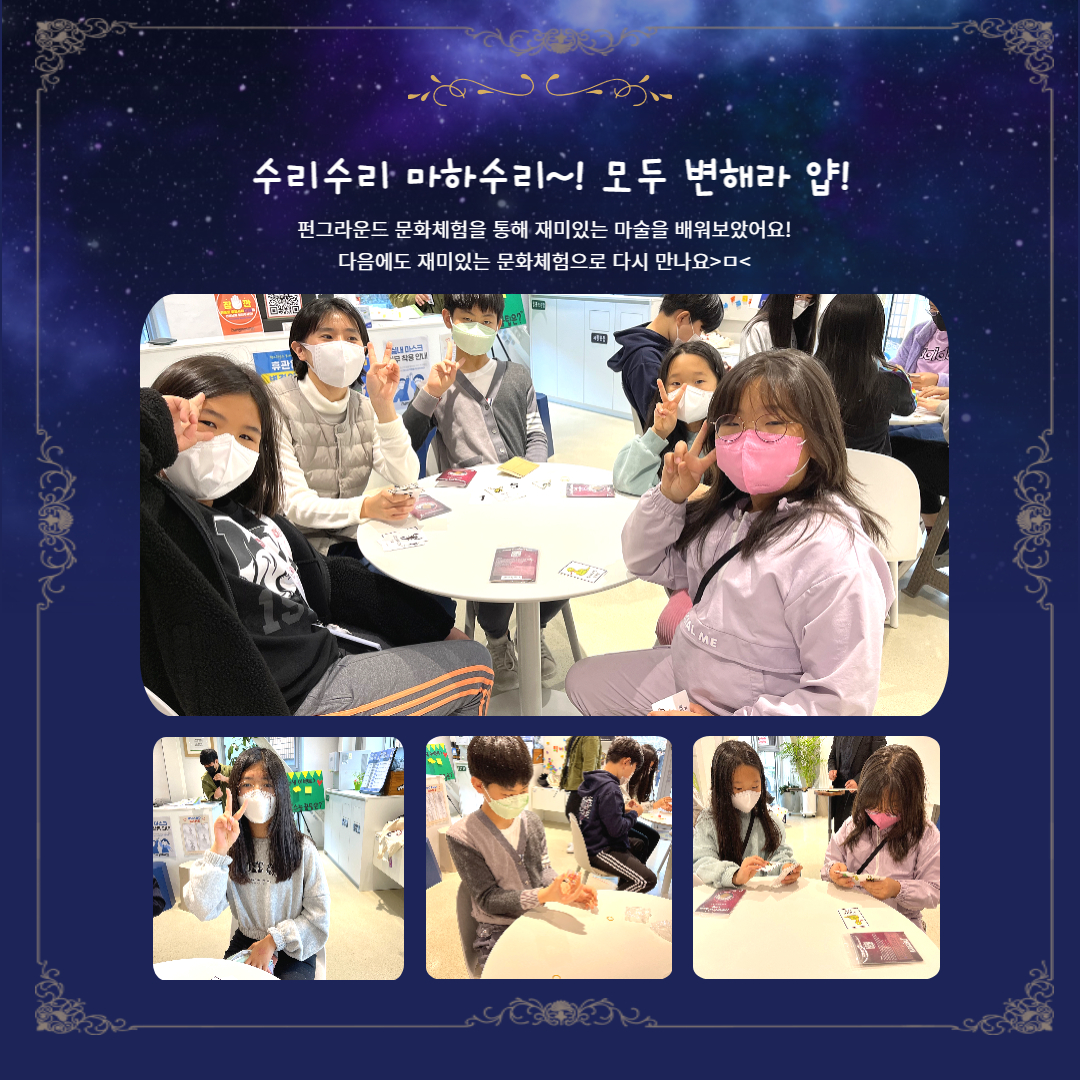 퇴계원 펀그라운드 퇴계원 11월 마술 문화체험 현장스케치! 작성자 펀그라운드 퇴계원 등록일자 2022년 11월 19일 18시 9분 53초 조회 394 001.jpg [ Size : 1.15MB, Down : 192 ] 미리보기 다운로드 002.jpg [ Size : 1.34MB, Down : 188 ] 미리보기 다운로드 003.jpg [ Size : 1.4MB, Down : 192 ] 미리보기 다운로드 004.jpg [ Size : 1.1MB, Down : 209 ] 미리보기 다운로드 005.jpg [ Size : 723.03KB, Down : 196 ] 미리보기 다운로드 목록보기