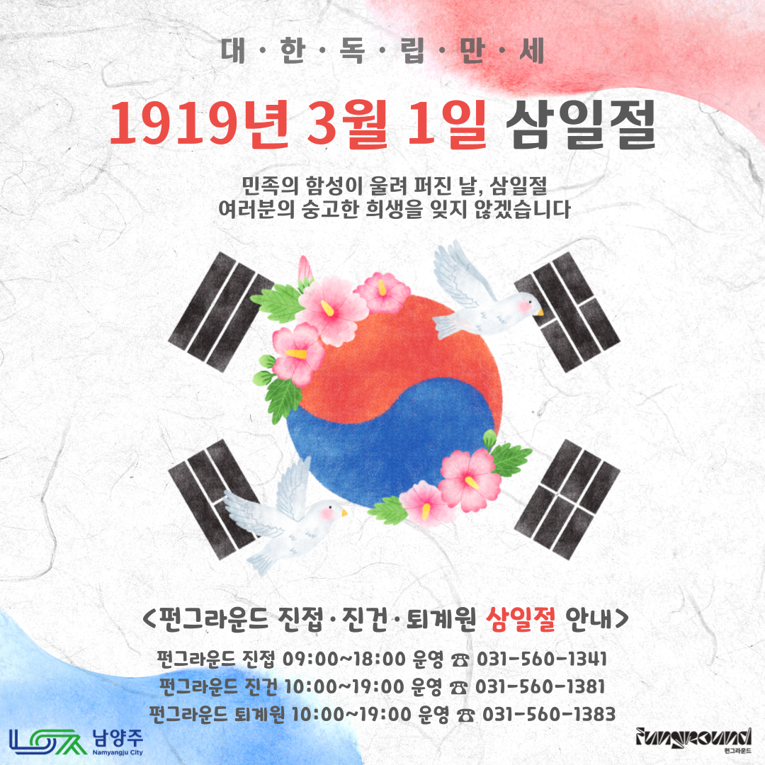 진건 [펀그라운드 진건] 삼일절 운영 안내 작성자 펀그라운드진접 등록일자 2024년 2월 25일 16시 52분 21초 조회 211 제목을-입력해주세요_-001.png [ Size : 1.34MB, Down : 79 ] 미리보기 다운로드 목록보기