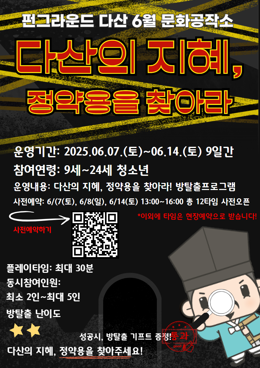 다산 [펀그라운드 다산] 6월 문화공작소 다산의 지혜, 정약용을 찾아라 방탈출프로그램 안내