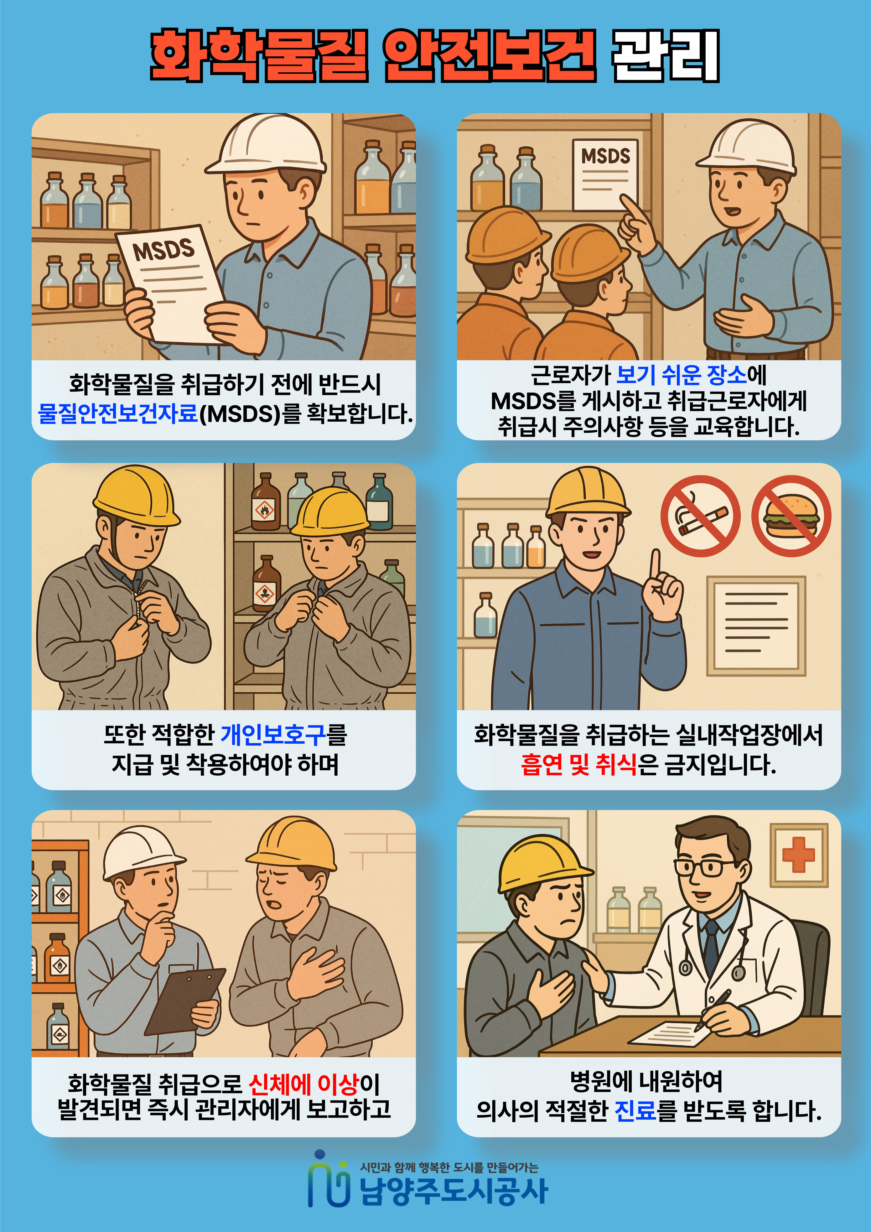 공지 공통 2025. 7월 웹툰형 안전수칙 및 안전표지 안내 작성자 펀그라운드진접 등록일자 2025년 7월 7일 9시 28분 25초 조회 148 1. 화학물질 안전보건 관리2. 질식사고 안전수칙3. 비상통로 물건 적치 금지 화학물질 안전보건 관리 안전수칙.jpg [ Size : 2.52MB, Down : 283 ] 미리보기 다운로드 질식사고 안전수칙.png [ Size : 1012.92KB, Down : 71 ] 미리보기 다운로드 비상통로 물건 적치 금지.jpg [ Size : 1.64MB, Down : 136 ] 미리보기 다운로드 목록보기