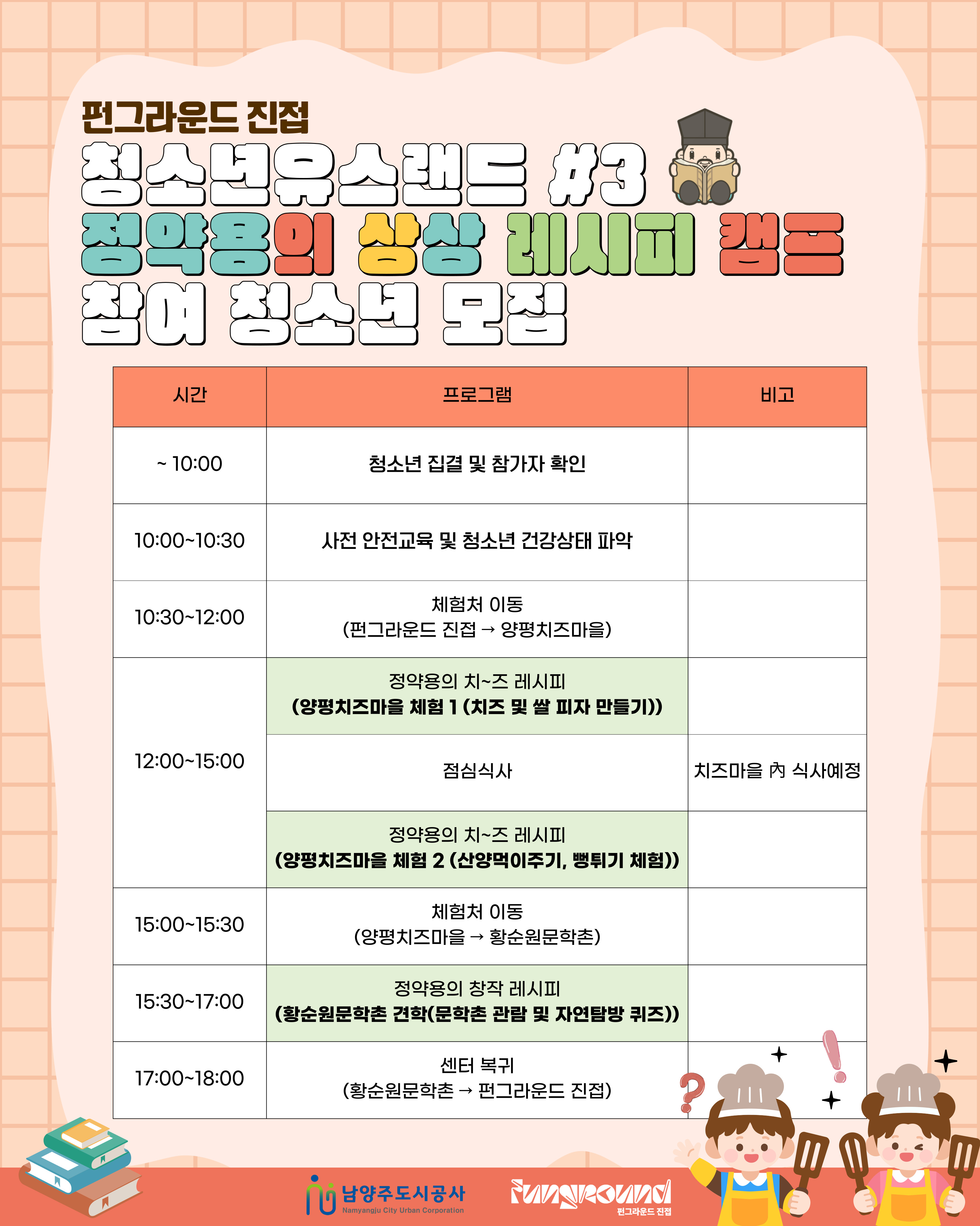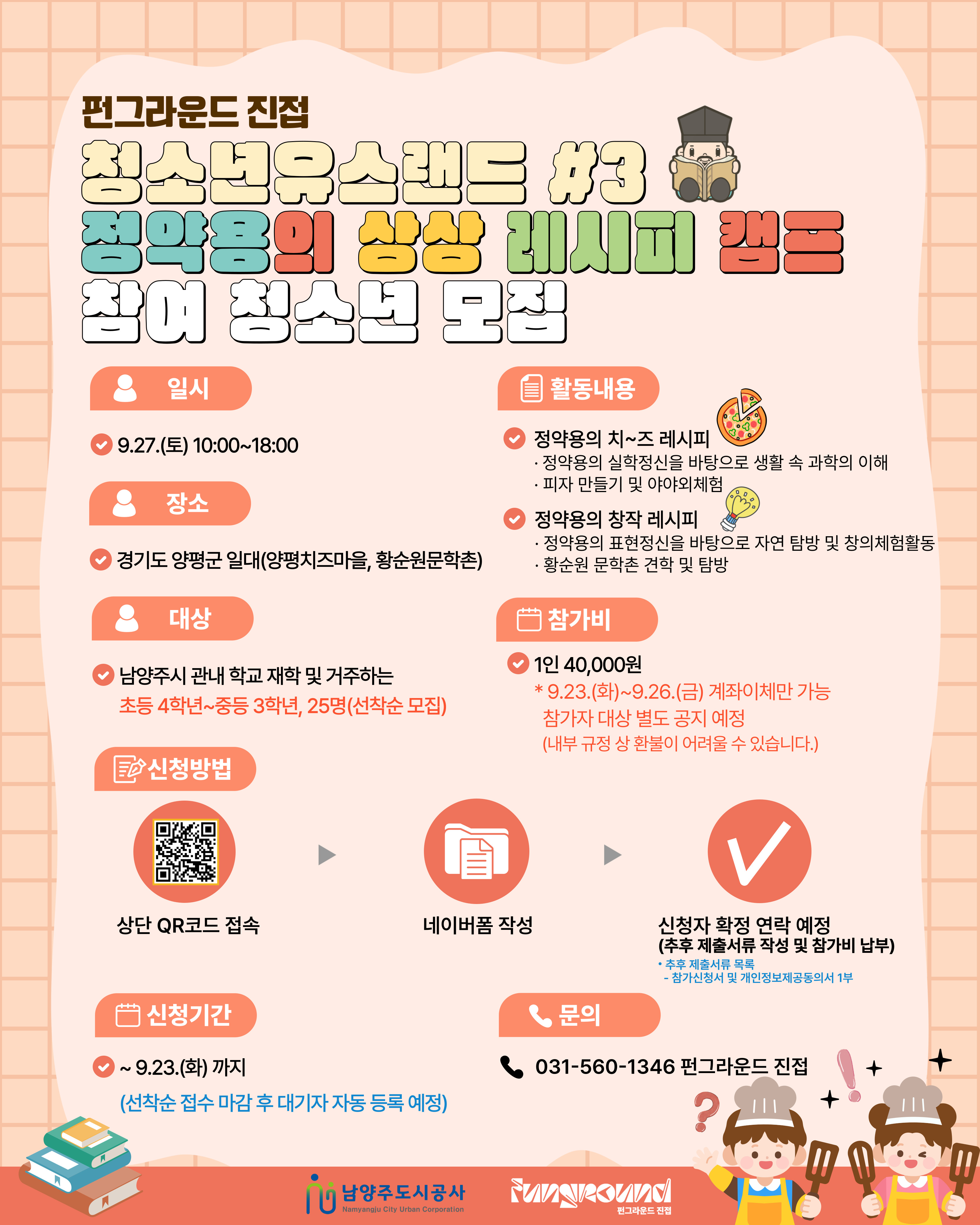 진접 [진접] 청소년유스랜드 #3 '정약용의 상상 레시피 캠프' 참여 청소년 모집
