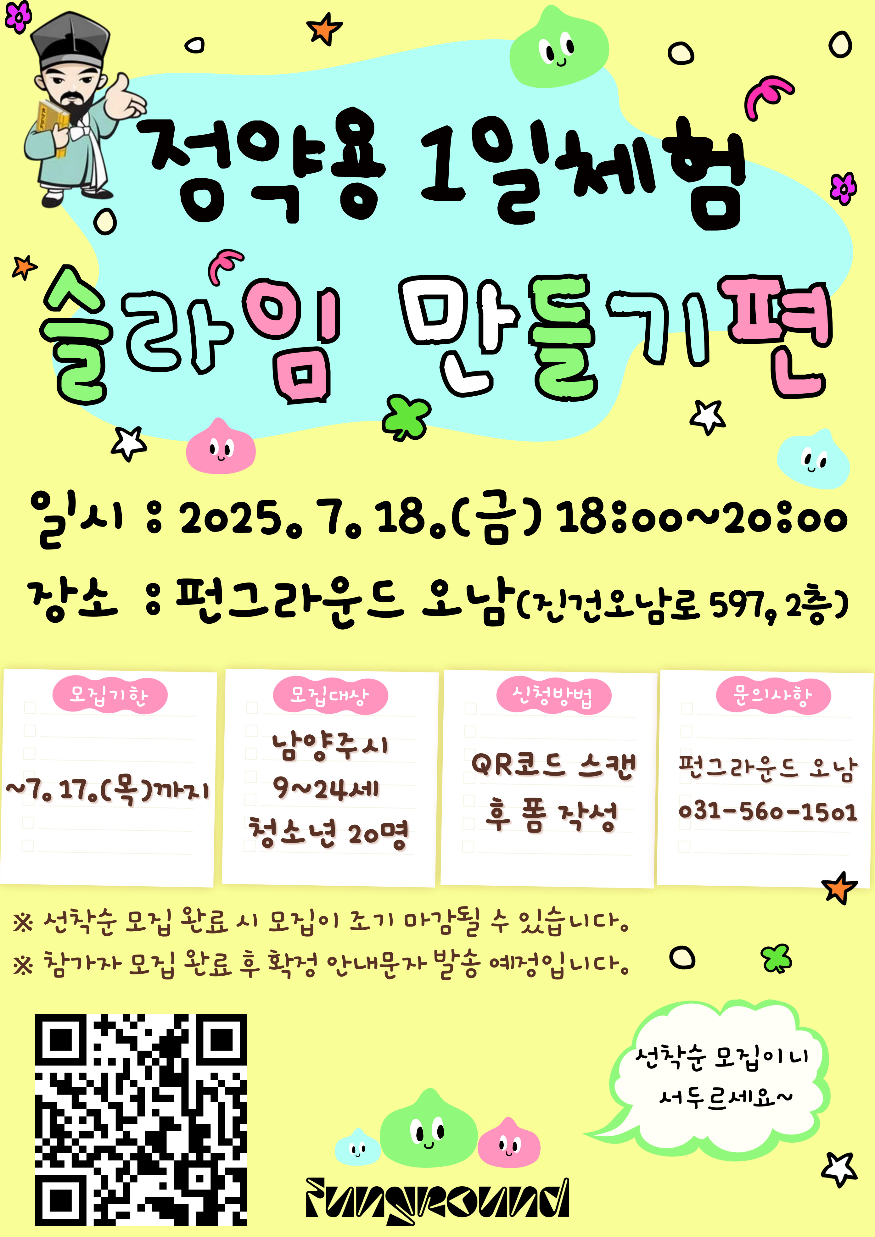 오남 [펀그라운드 오남] 정약용 1일체험 <슬라임 만들기편> 참여자 모집 안내