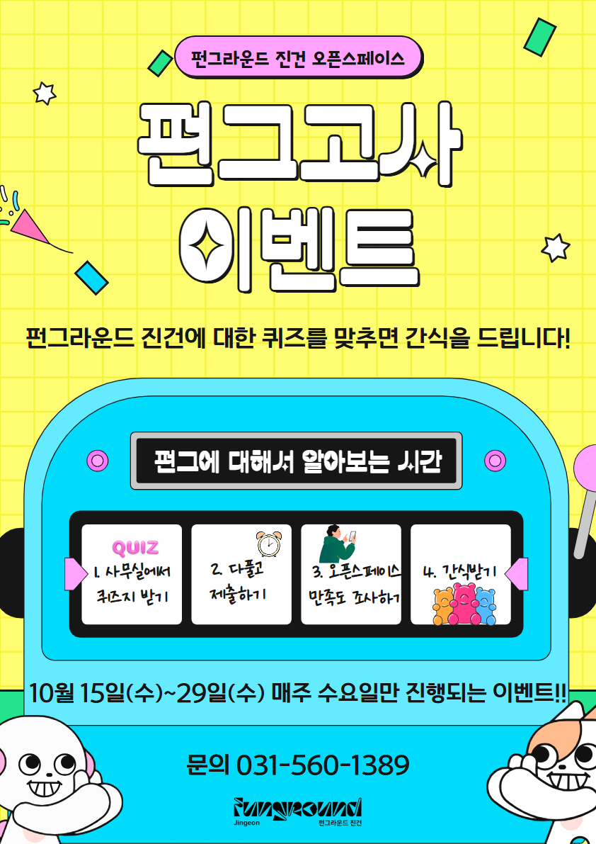 펀그라운드 진건을 주제로 한 퀴즈를 풀고 간식도 받아가는 즐거운 이벤트!