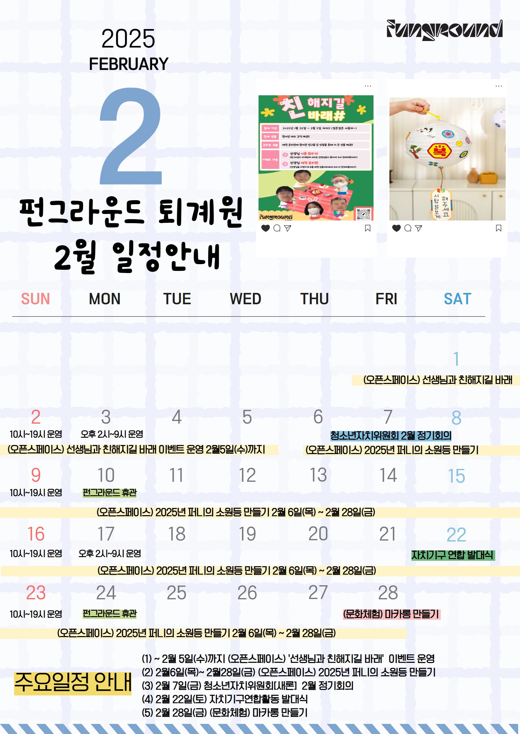 펀그라운드 퇴계원 2025년 2월 일정 안내 입니다.