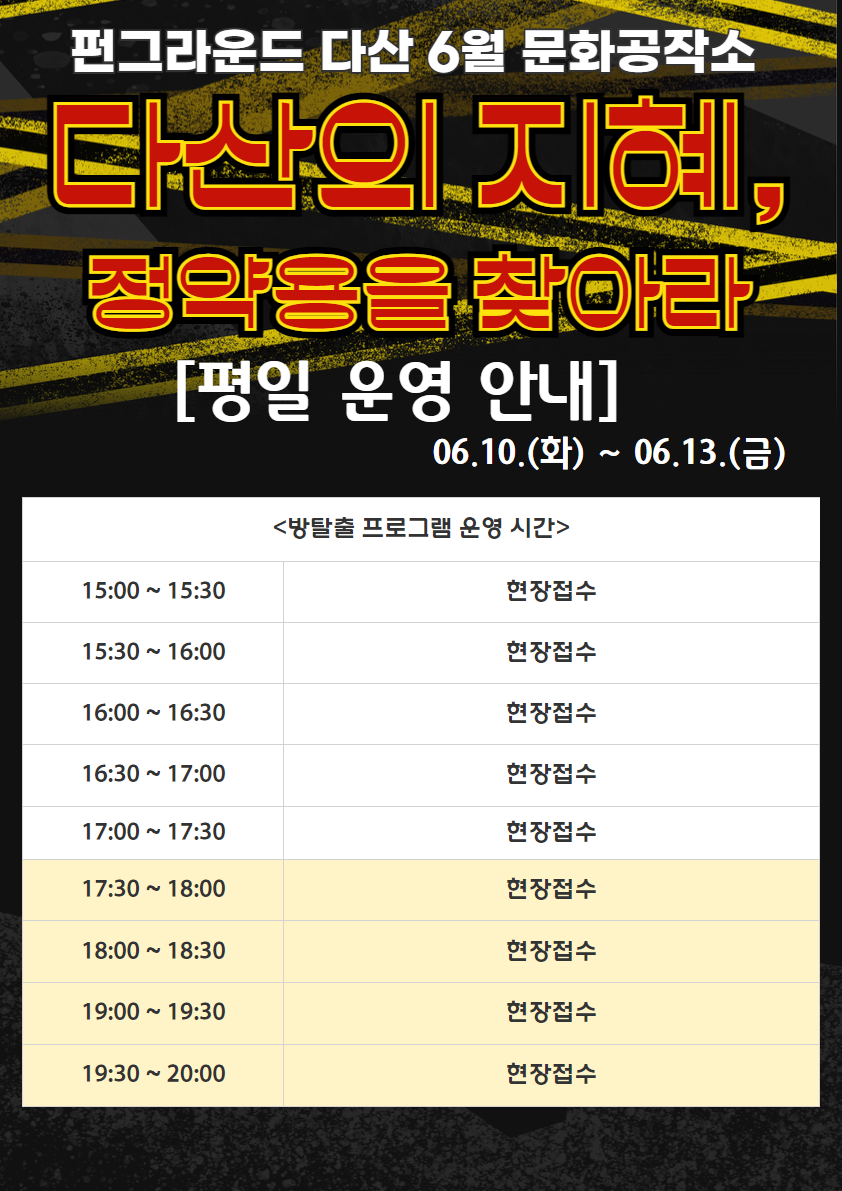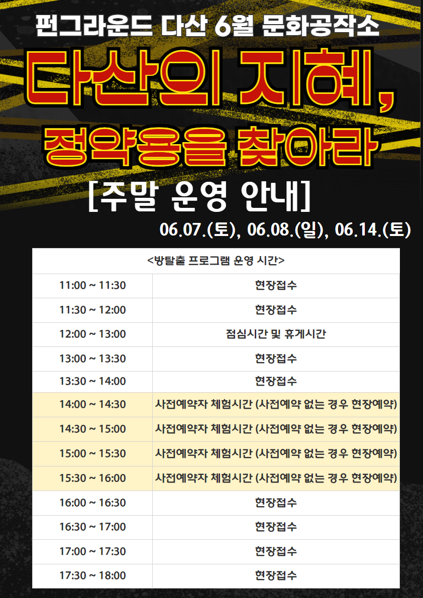 다산 [펀그라운드 다산] 6월 문화공작소 방탈출 프로그램 운영시간 안내