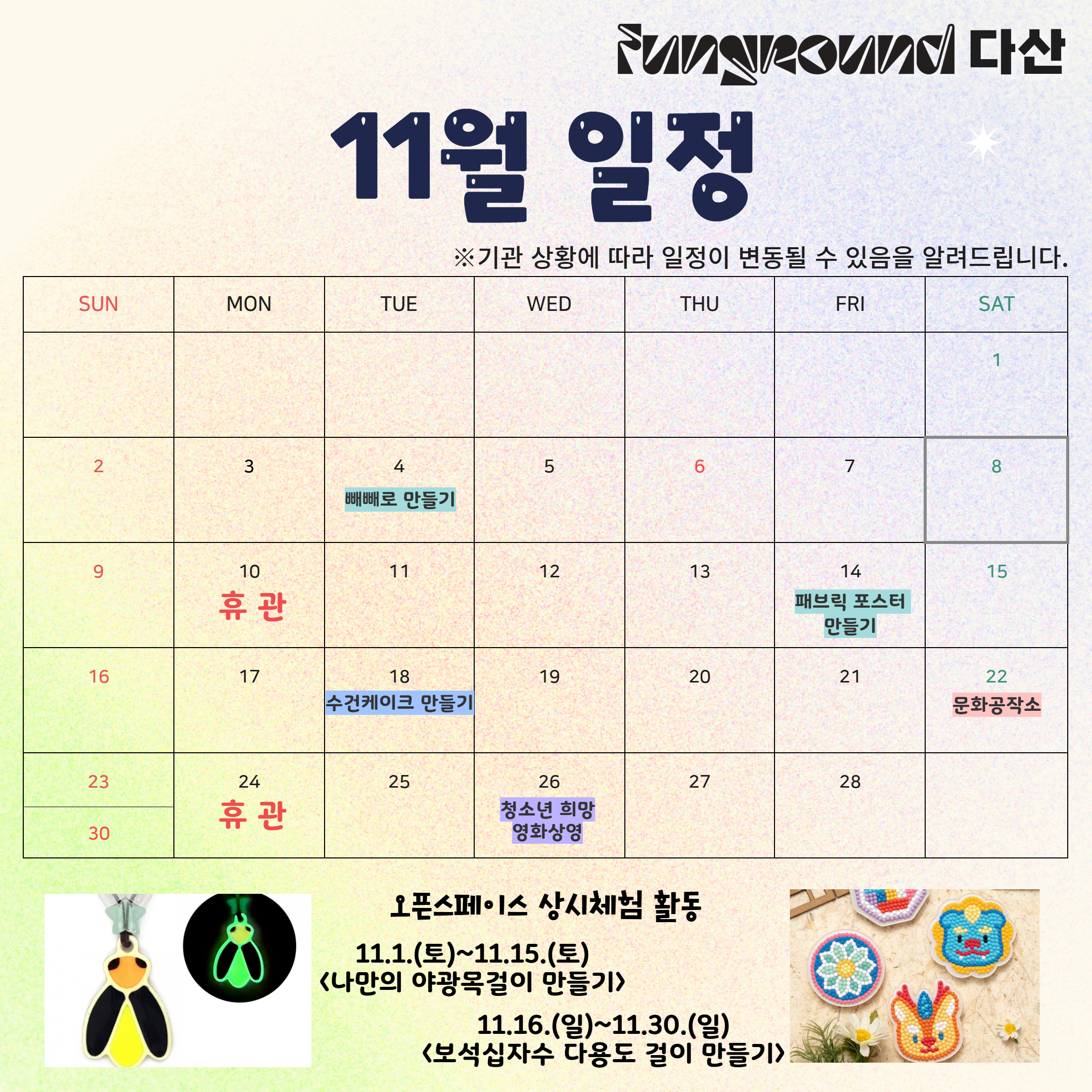 공지 다산 [펀그라운드 다산] 11월 일정 안내