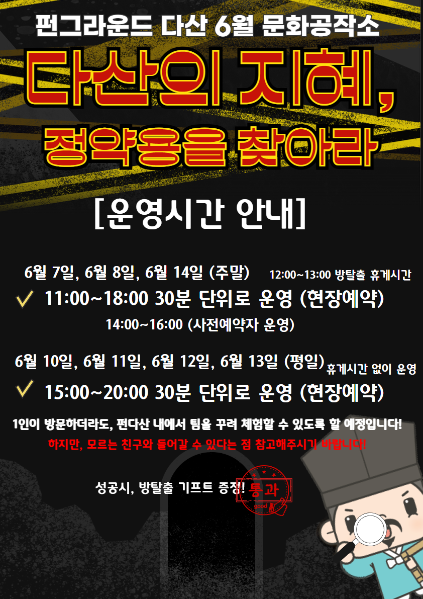6월 문화공작소 방탈출 프로그램 운영 시간 안내드립니다.