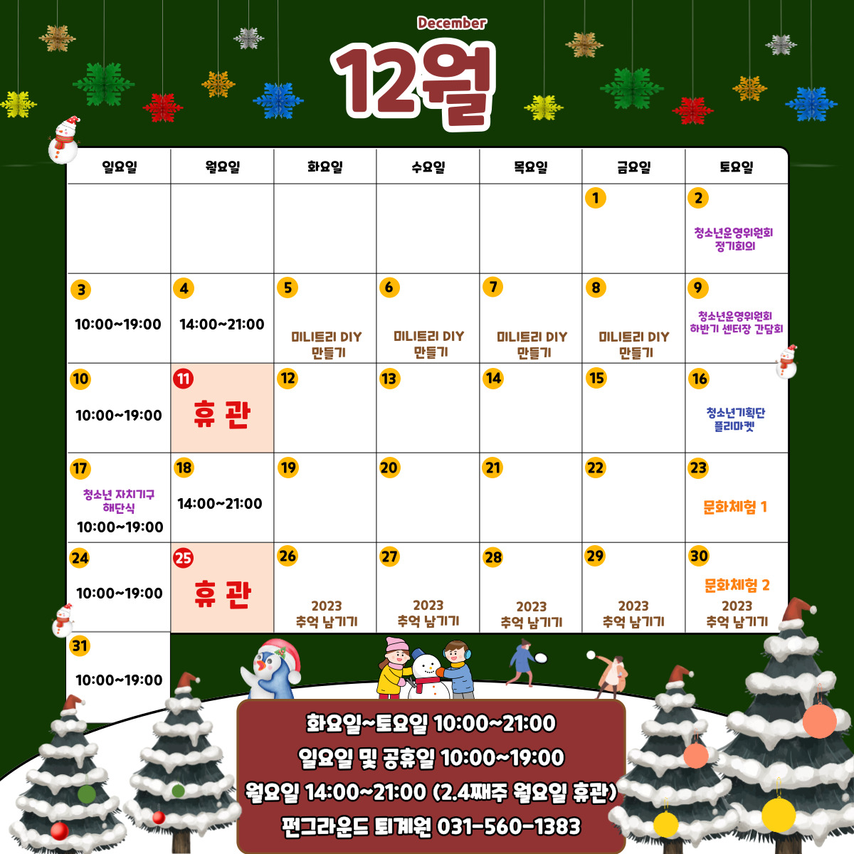 * 12월도 다양한 프로그램과 일정이 준비되어 있사오니 많은 관심과 응원 부탁드립니다 *