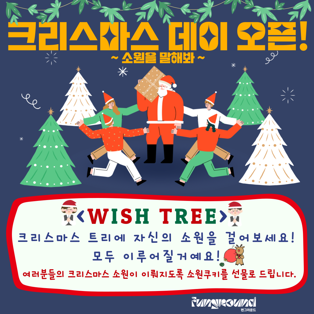 학생 여러분들의 소원을 적은 종이를 트리에 걸어주세요! 여러분들의 소원도 트리와 함께 반짝반짝 빛날 예정입니다!