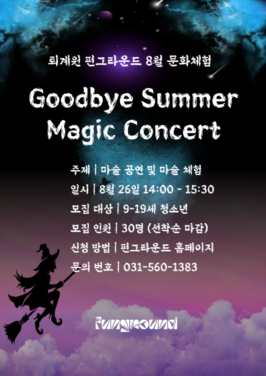 퇴계원 <우리의 Summer는 상상이상 시즌2> (Good Bye Summer 마술공연) 참가자 모집 작성자 펀그라운드 퇴계원 등록일자 2023년 8월 18일 12시 30분 7초 조회 230 마술 포스터.jpg [ Size : 266.08KB, Down : 150 ] 미리보기 다운로드 목록보기