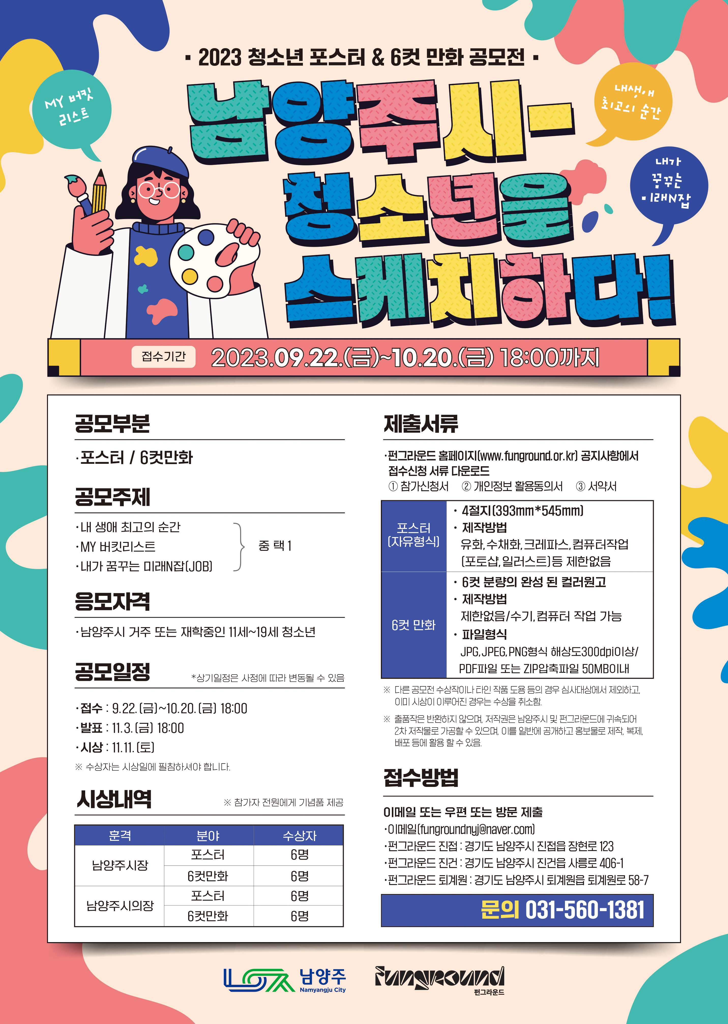 진접 ~10월 20일 금요일 18:00까지, <2023 청소년 포스터&6컷 만화 공모전>