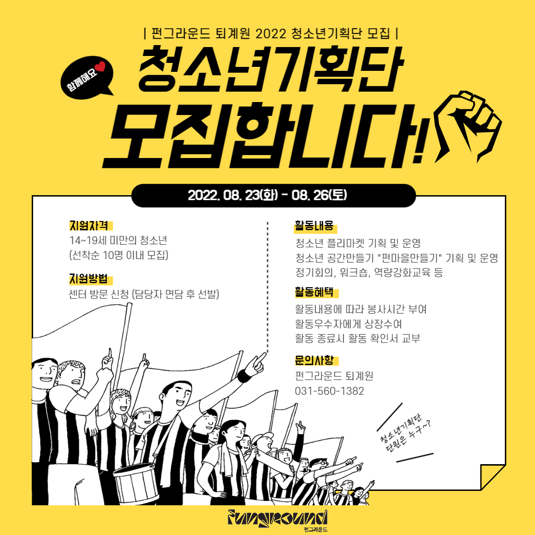 퇴계원 펀그라운드 퇴계원 청소년기획단 모집 안내 작성자 펀그라운드 퇴계원 등록일자 2022년 9월 7일 15시 26분 34초 조회 309 제목을 입력해주세요_-001 (3).jpg [ Size : 454.36KB, Down : 190 ] 미리보기 다운로드 목록보기