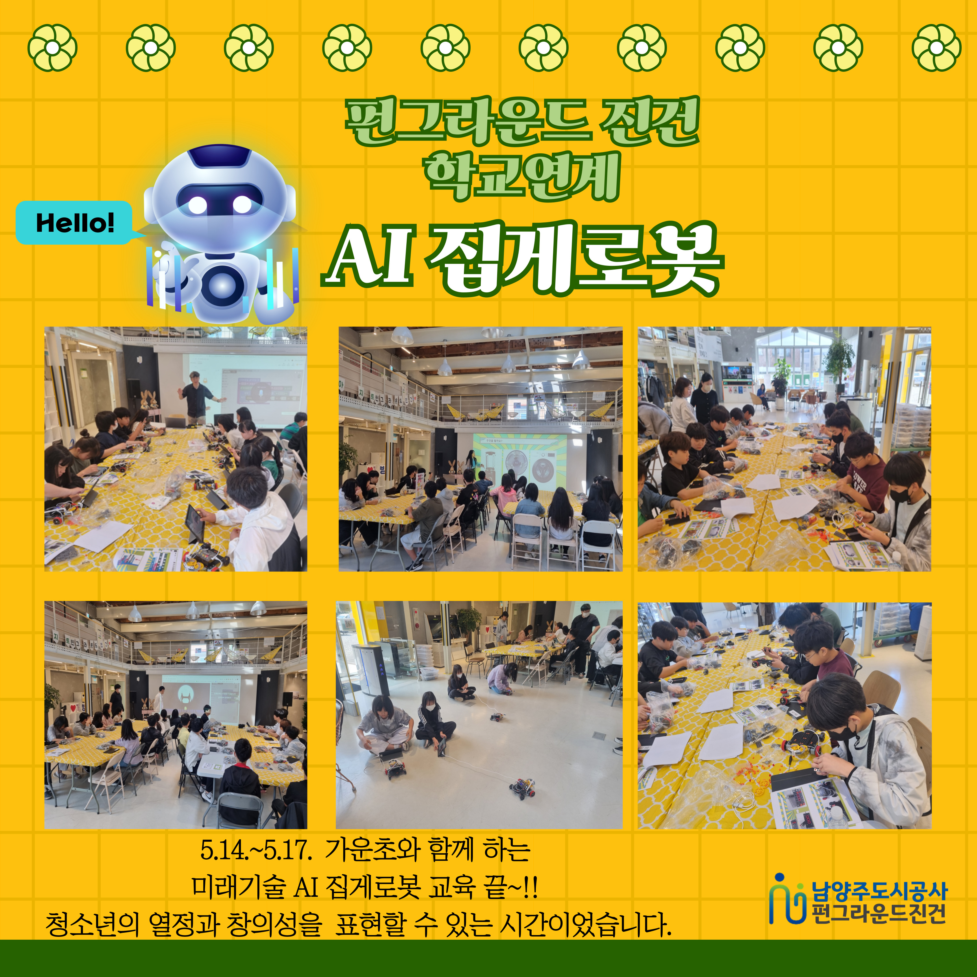 진건 5월 학교연계 미래N망주 AI집게로봇편 작성자 개발자 등록일자 2024년 6월 5일 19시 26분 57초 조회 244 5월 학교연계 미래N망주 AI집게로봇편 WITH 가운초청소년의 열정으로 완성된 AI 집게로봇!! 로봇 제작 및 AI 코딩 작업까지 마스터!!!! 진건) 학교연계 미래기술(sns).jpg [ Size : 2.34MB, Down : 76 ] 미리보기 다운로드 목록보기