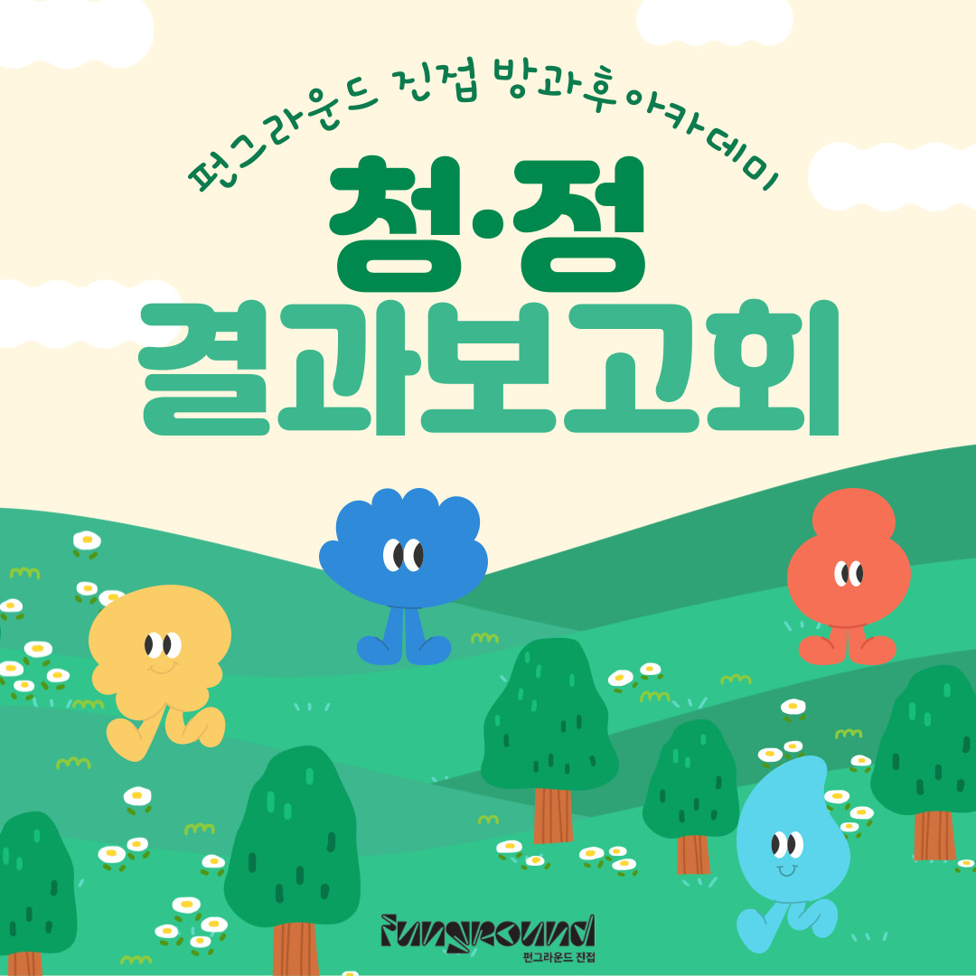 진접 [청소년방과후아카데미] 청·정 결과보고회 작성자 펀그라운드진접 등록일자 2023년 10월 18일 13시 22분 47초 조회 348 청소년방과후아카데미- 청·정 결과보고회청소년방과후아카데미 아띠는약 5개월 간 사회참여 프로젝트청·정에 참여하여 다양한활동을 진행하였습니다.지난 10월 14일 진행된청·정 결과보고회에서멋진 발표로 마무리까지완벽하게 하였습니다:)펀그라운드 진접청소년방과후아카데미에궁금한 점이 있거나,관심이 있으신 분들은언제든지 연락 주세요!TEL. 031-560-1343, 1344 001.jpg [ Size : 168.41KB, Down : 121 ] 미리보기 다운로드 합본.jpg [ Size : 1.04MB, Down : 113 ] 미리보기 다운로드 목록보기