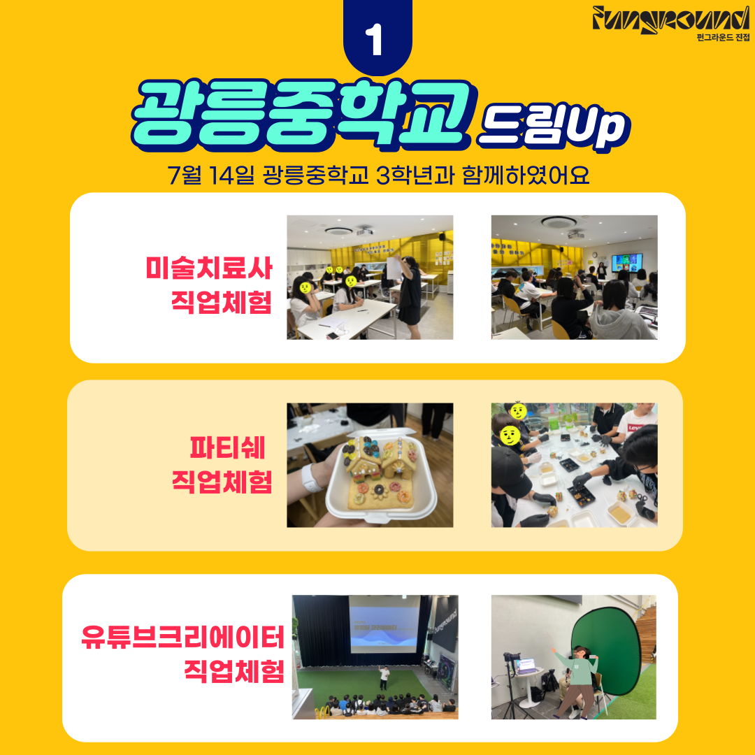 진접 7월의 드림Up 작성자 펀그라운드진접 등록일자 2023년 7월 21일 15시 29분 5초 조회 433 펀그라운드 진접의 학교연계형으로 진행된 드림Up의 소식을 접합니다. 001.png [ Size : 171.68KB, Down : 112 ] 미리보기 다운로드 002.png [ Size : 522.93KB, Down : 116 ] 미리보기 다운로드 003.png [ Size : 571.39KB, Down : 124 ] 미리보기 다운로드 004.png [ Size : 186.27KB, Down : 110 ] 미리보기 다운로드 목록보기