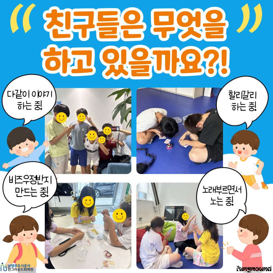 퇴계원 펀그라운드 퇴계원 오픈스페이스: 오늘의 일상] 작성자 펀그라운드진접 등록일자 2024년 7월 12일 17시 40분 55초 조회 324 [펀그라운드 퇴계원 오픈스페이스 "오늘의 일상" ]오늘 퍼니들은 어떤 하루를 보내고 있을까요?!보드게임을 하는 퍼니부터 자유롭게 수다를 떠는 퍼니들까지다양한 방법으로 펀그라운드를 이용하는 퍼니들~!!!펀그라운드 없으면 못사는 퍼니들의 일상이였습니다~!앞으로도 펀그라운드퇴계원의 많은 관심 부탁드려요!#펀그라운드 #펀그라운드퇴계원 #남양주도시공사 #남양주시 #청소년이용시설 #청소년전용시설 #퇴계원 001.png [ Size : 259.52KB, Down : 97 ] 미리보기 다운로드 스크린샷 2024-07-12 172505.png [ Size : 893.2KB, Down : 106 ] 미리보기 다운로드 스크린샷 2024-07-12 172541.png [ Size : 173.57KB, Down : 103 ] 미리보기 다운로드 목록보기