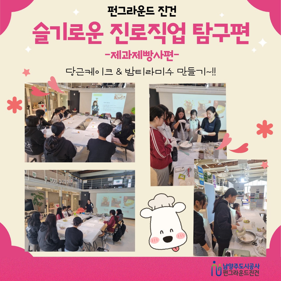 진건 11월 슬기로운방과후생활 시즌 2 시작합니다!!! 작성자 개발자 등록일자 2024년 11월 29일 15시 16분 40초 조회 293 슬기로운방과후생활 시즌 2!!!시작합니다.!!!이번 시즌 2는 중학교 대상으로 '슬기로운 진로직업 탐구편'으로 진로직업체험 프로그램으로 기획했습니다~!!첫 번째, 제과제빵사편 시작합니다~!! :) 11월 슬기로운 진로직업탐구편.jpg [ Size : 918.42KB, Down : 99 ] 미리보기 다운로드 목록보기