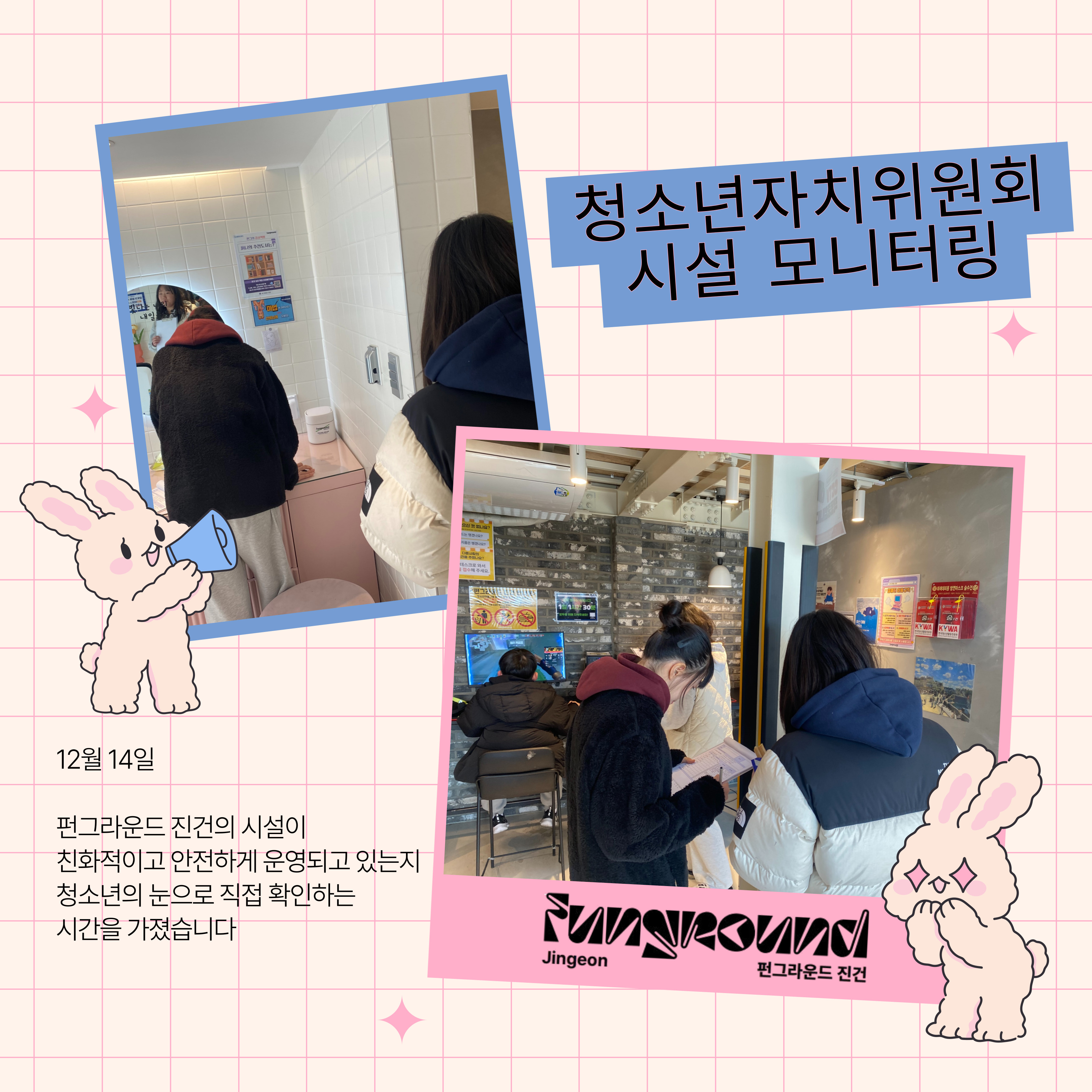 진건 [진건] 청소년자치위원회 2차 시설 모니터링 작성자 펀그라운드진건 등록일자 2025년 1월 9일 14시 17분 44초 조회 246 청소년자치위원회 친구들이 펀그라운드 진건이 안전하게 운영되고 있는지 모니터링했습니다~!진건은 펀데기가 지킨다!! 시설-모니터링-001.jpg [ Size : 1.54MB, Down : 79 ] 미리보기 다운로드 목록보기