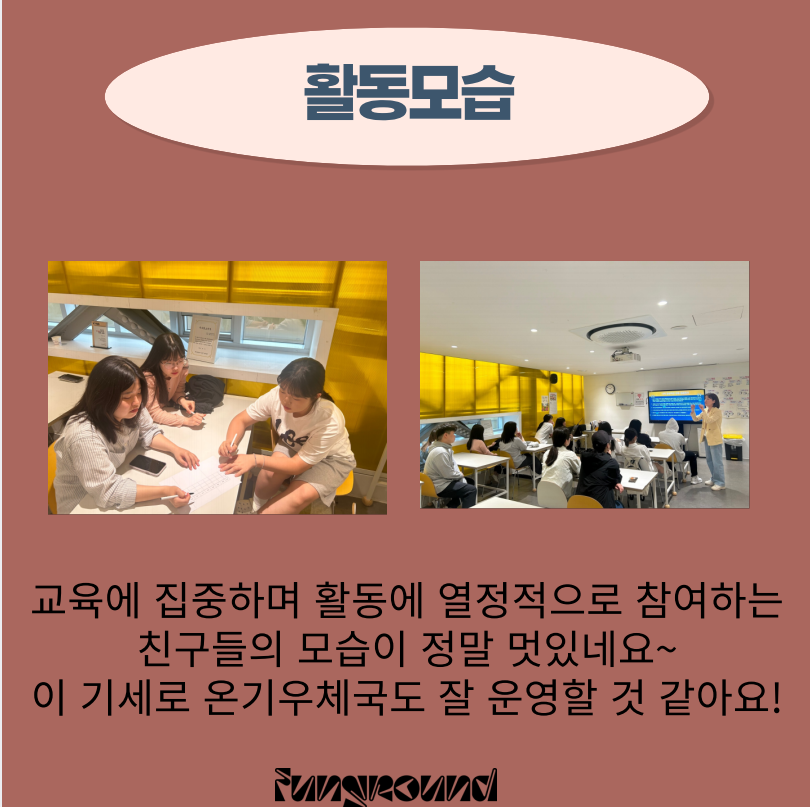 진접 청소년자원봉사단 전문교육 및 5월 정기회의 활동 작성자 펀그라운드진접 등록일자 2024년 5월 11일 18시 14분 48초 조회 255 오늘은 온기우체국 운영을 위한 심리 및 공감 교육과 5월 정기회의를 진행했습니다.교육을 통해 또래의 감정에 대해 이해할 수 있는 좋은 경험이 되었고 온기우체국을 잘 운영할 수 있는 시작점을 만들 수 있는 교육이었습니다. 5월 정기회의에서는 5월 25일에 있을 플리마켓 부스 (가치정거장) 운영 방안에 대해 이야기를 나누고 어떻게 운영할지에 대해 고민하는 시간을 가졌습니다. 25일에 있을 자원봉사단의 가치정거장 부스에 많은 관심 가져주세요! KakaoTalk_20240511_180620759.png [ Size : 92.7KB, Down : 77 ] 미리보기 다운로드 KakaoTalk_20240511_180633513.png [ Size : 165.75KB, Down : 76 ] 미리보기 다운로드 KakaoTalk_20240511_180647631.png [ Size : 446.23KB, Down : 71 ] 미리보기 다운로드 KakaoTalk_20240511_180659134.png [ Size : 331.54KB, Down : 81 ] 미리보기 다운로드 목록보기