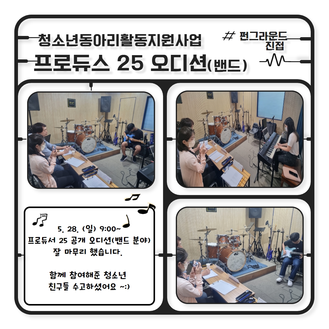 진접 청소년동아리활동지원사업 「프로듀스 25 공개 오디션」현장속으로~!! 작성자 펀그라운드진접 등록일자 2023년 5월 30일 15시 8분 14초 조회 438 프로듀스 25(밴드).jpg [ Size : 523.12KB, Down : 113 ] 미리보기 다운로드 프로듀스 25(댄스).jpg [ Size : 891.51KB, Down : 113 ] 미리보기 다운로드 목록보기