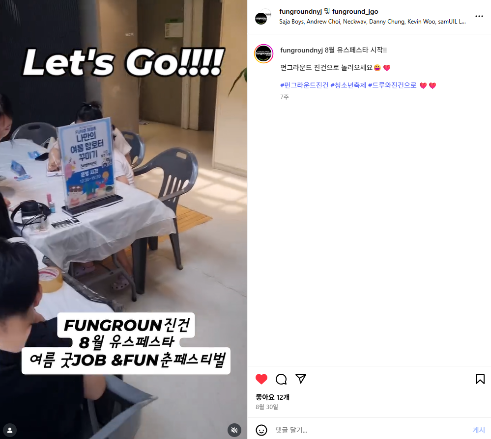 진건 [펀그라운드 진건] 유스페스타 '여름굿JOB&FUN춘 페스티벌' 작성자 펀그라운드진건 등록일자 2025년 10월 22일 17시 43분 58초 조회 64 스크린샷 2025-10-22 174350.png [ Size : 566.12KB, Down : 29 ] 미리보기 다운로드 목록보기