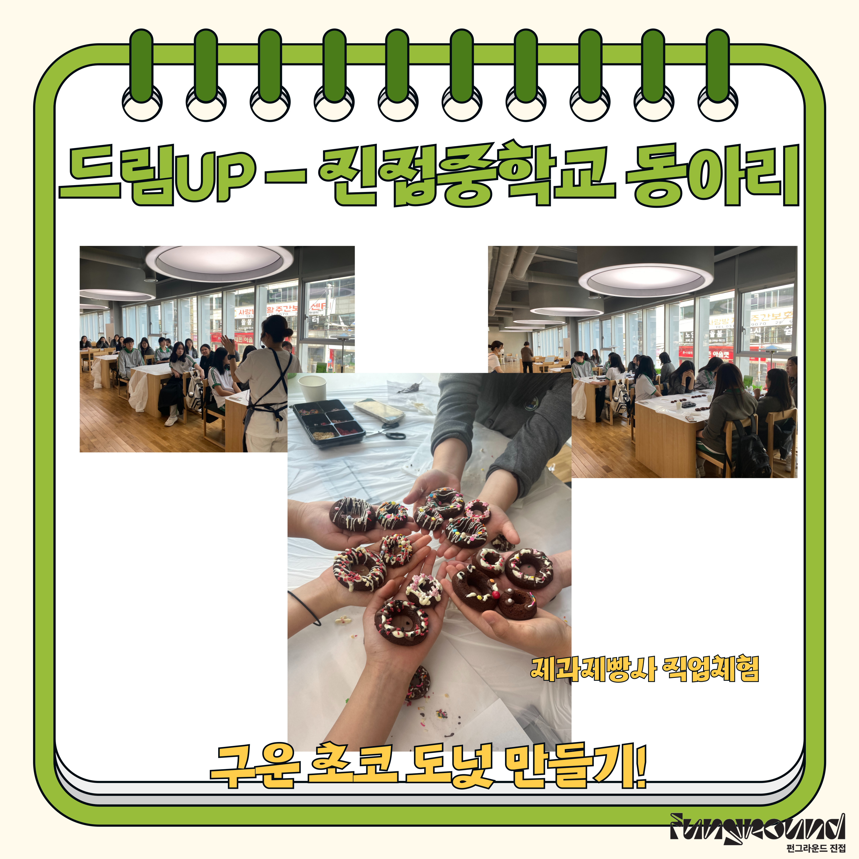 진접 2024 드림 Up 진접중 동아리 제과제빵사 체험 작성자 펀그라운드진접 등록일자 2024년 5월 4일 16시 43분 30초 조회 252 5월 3일 진접중동아리 친구들과 함께 제과제빵사 직업에 대한 설명을 듣고 초코도넛만들기 체험을 진행했습니다!!추후 다른 2번의 직업체험이 남았으니 많은 관심부탁드립니다:) 제목을-입력해주세요_-001 (1).jpg [ Size : 1.57MB, Down : 77 ] 미리보기 다운로드 목록보기