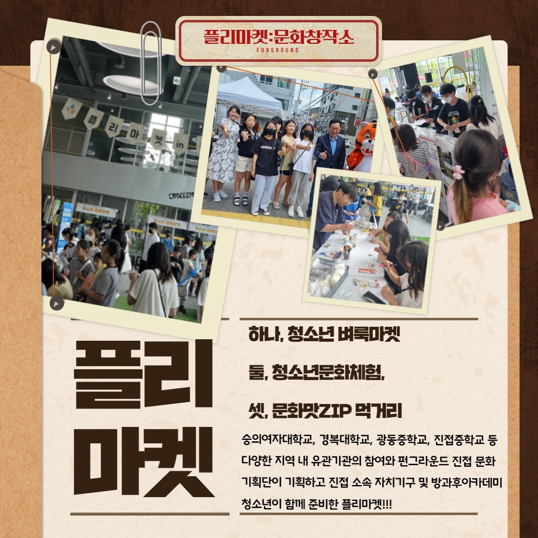 1부로 청소년의 즐거움을 드릴 수 있는 벼룩마켓, 문화예술체험 부스, 문화맛zip 먹거리 등을 운영했습니다