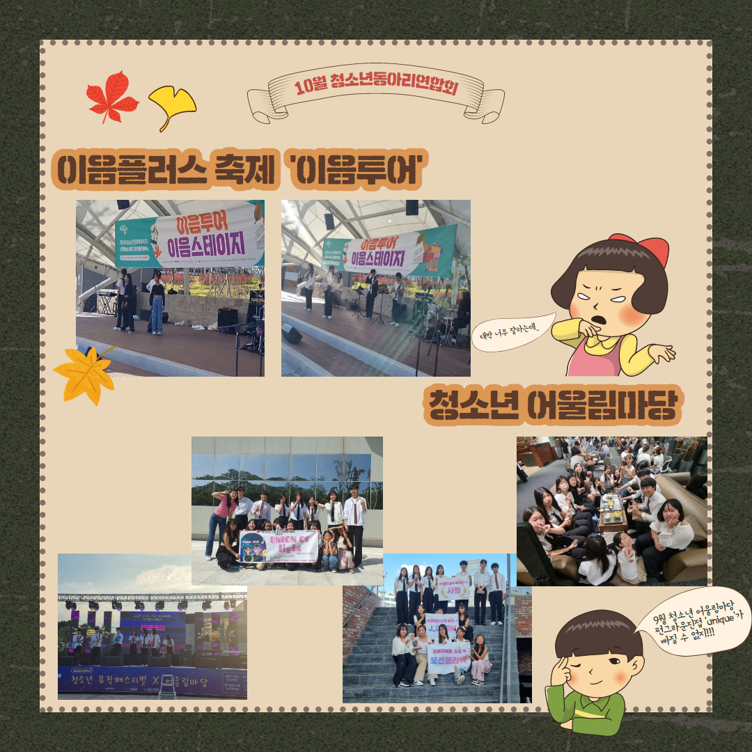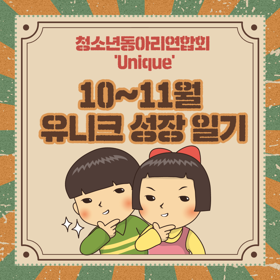 진접 [청소년동아리] 10~11월 Unique 성장 일기 작성자 개발자 등록일자 2023년 11월 14일 14시 54분 53초 조회 293 청소년 동아리 'Unique'는 10~11월 자신의 재능과 꿈을 위해 열심히 달려가고 있어요~!!많은 응원 부탁합니다. 10~11월 청소년동아리(1).jpg [ Size : 732.56KB, Down : 118 ] 미리보기 다운로드 10~11월 청소년동아리(2).jpg [ Size : 1.03MB, Down : 101 ] 미리보기 다운로드 10~11월 청소년동아리(3).jpg [ Size : 1020.79KB, Down : 101 ] 미리보기 다운로드 10~11월 청소년동아리(4).jpg [ Size : 982.82KB, Down : 114 ] 미리보기 다운로드 목록보기