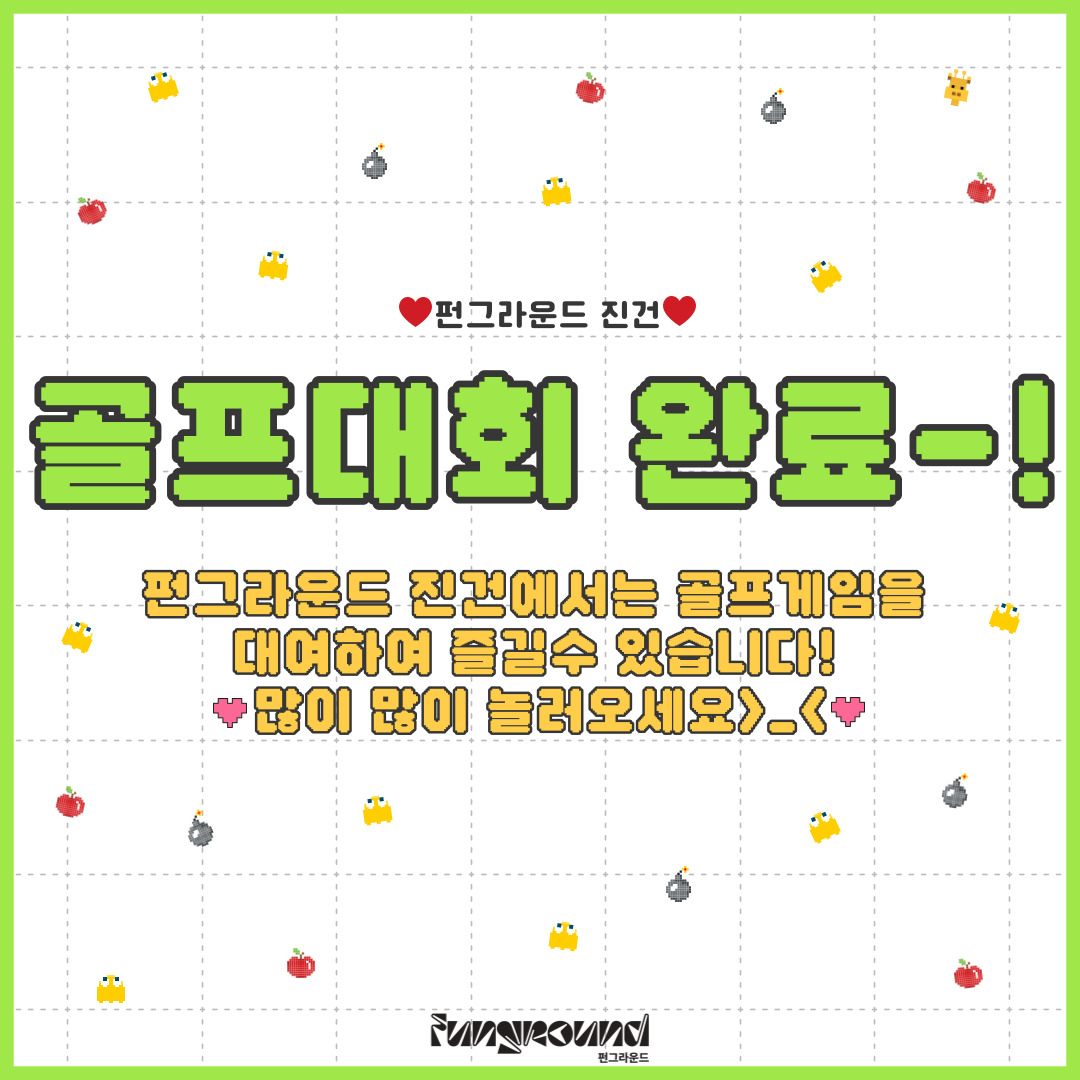 진건 [펀그라운드 진건] 새로운 보드게임, 골프의 등장! 골프대회 후기 작성자 펀그라운드진건 등록일자 2023년 8월 4일 13시 36분 53초 조회 333 펀그라운드 진건드.디.어 펀그라운드 진건에서 새로운 보드게임이 등.장.하였습니다! 두둥새로운 게임의 등장으로 대회를 개최하였습니다! 즐거웠던 현장 후기를 지금 만나볼까요?*펀그라운드 진건에 놀러오시면 미니골프게임을 대여하실 수 있습니다! 002.jpg [ Size : 277.84KB, Down : 140 ] 미리보기 다운로드 003.jpg [ Size : 311.49KB, Down : 126 ] 미리보기 다운로드 004.jpg [ Size : 297.05KB, Down : 120 ] 미리보기 다운로드 005.jpg [ Size : 356.89KB, Down : 117 ] 미리보기 다운로드 006.jpg [ Size : 227.45KB, Down : 123 ] 미리보기 다운로드 목록보기
