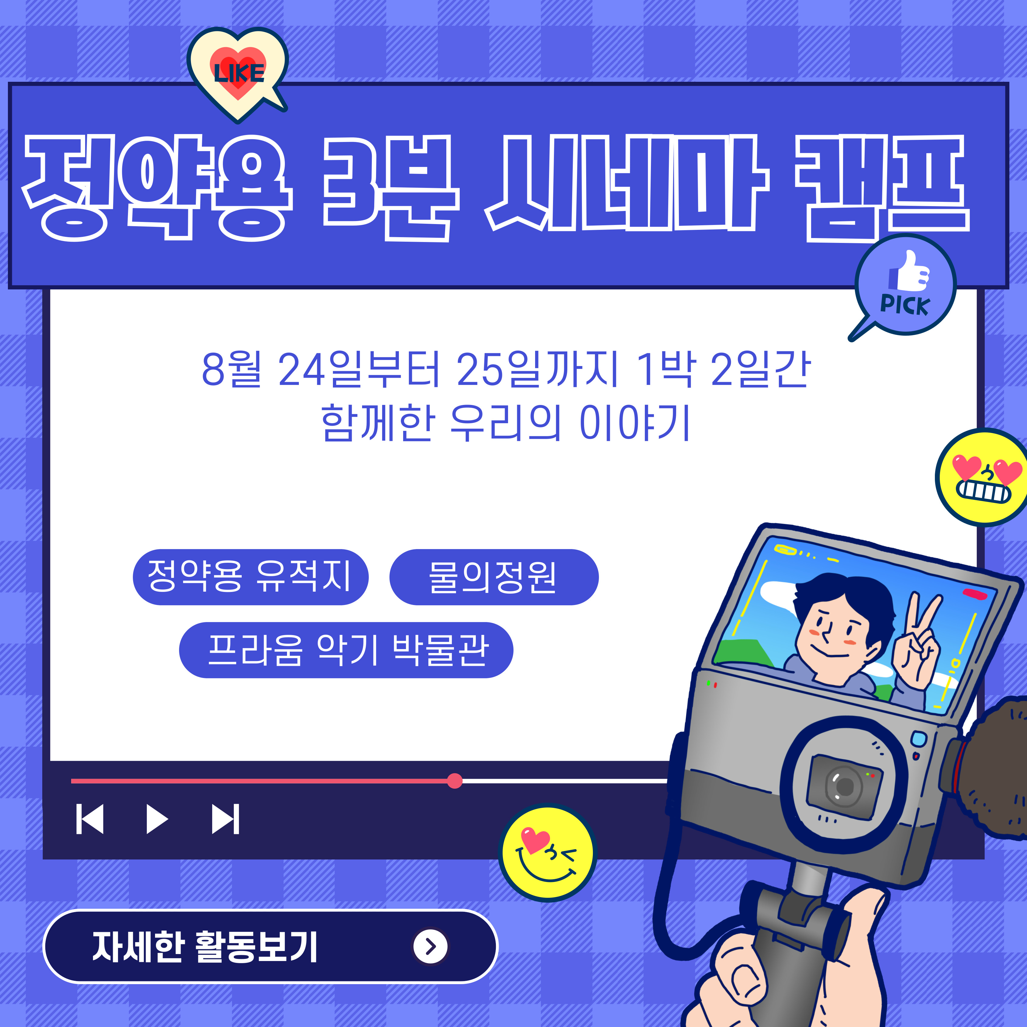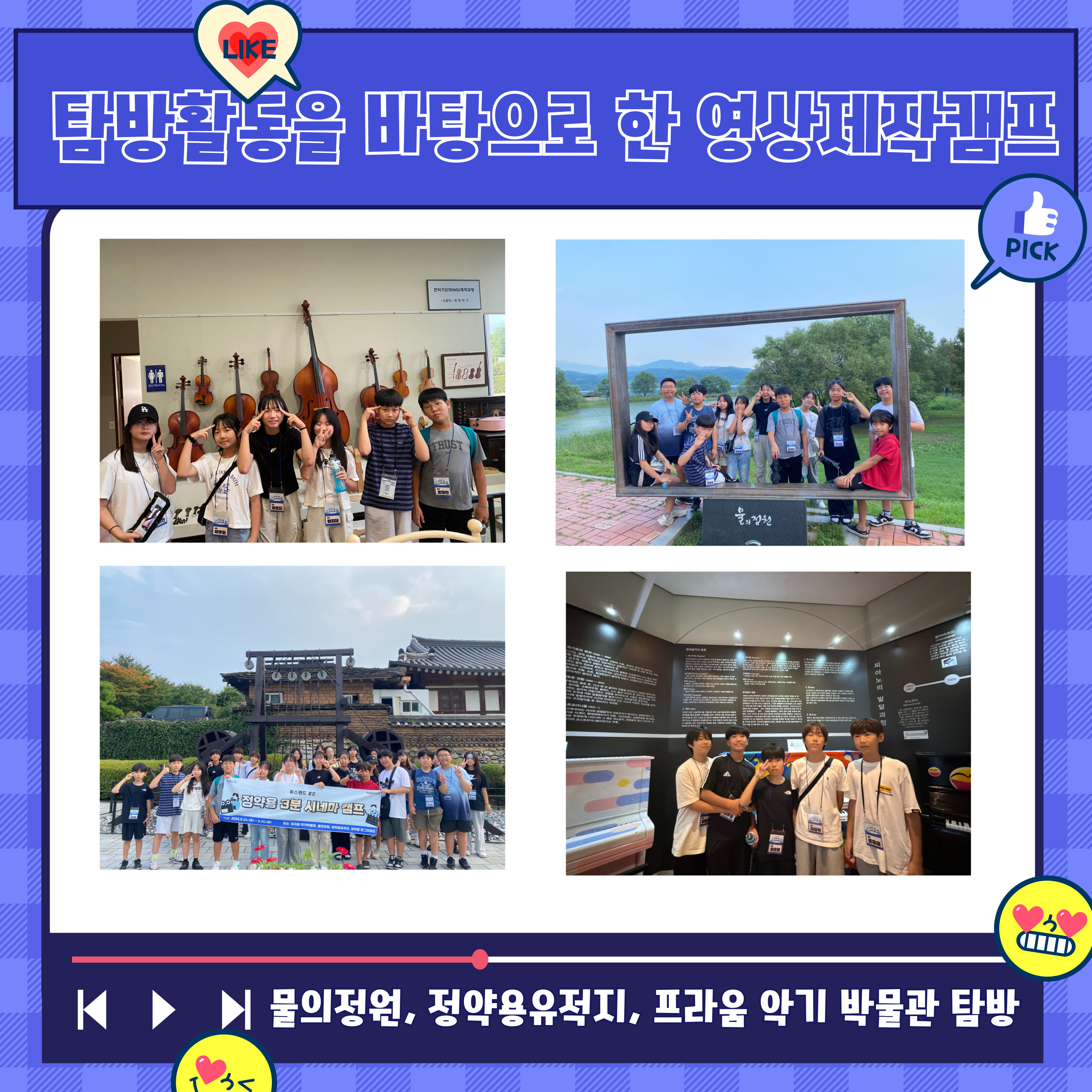 진접 [펀그라운드 진접] 유스랜드#2 정약용 3분 시네마 캠프 작성자 펀그라운드진건 등록일자 2024년 8월 25일 13시 45분 53초 조회 249 8월 24일(토) 25일(일) 1박2일 동안 남양주시를 탐방하고 홍보영상을 촬영하는 캠프를 진행했습니다열정가득했던 그날을 사진으로 보실까요???더 자세한 활동이 궁금하다면!! 펀그라운드 진접 유튜브, 인스타그램 계정을 통해 참가자들이 직접!! 만든 영상을 시청해주세요~~~ 제목을-입력해주세요_-001.jpg [ Size : 1.49MB, Down : 106 ] 미리보기 다운로드 제목을-입력해주세요_-002.jpg [ Size : 2.13MB, Down : 92 ] 미리보기 다운로드 제목을-입력해주세요_-003.jpg [ Size : 2.22MB, Down : 104 ] 미리보기 다운로드 목록보기