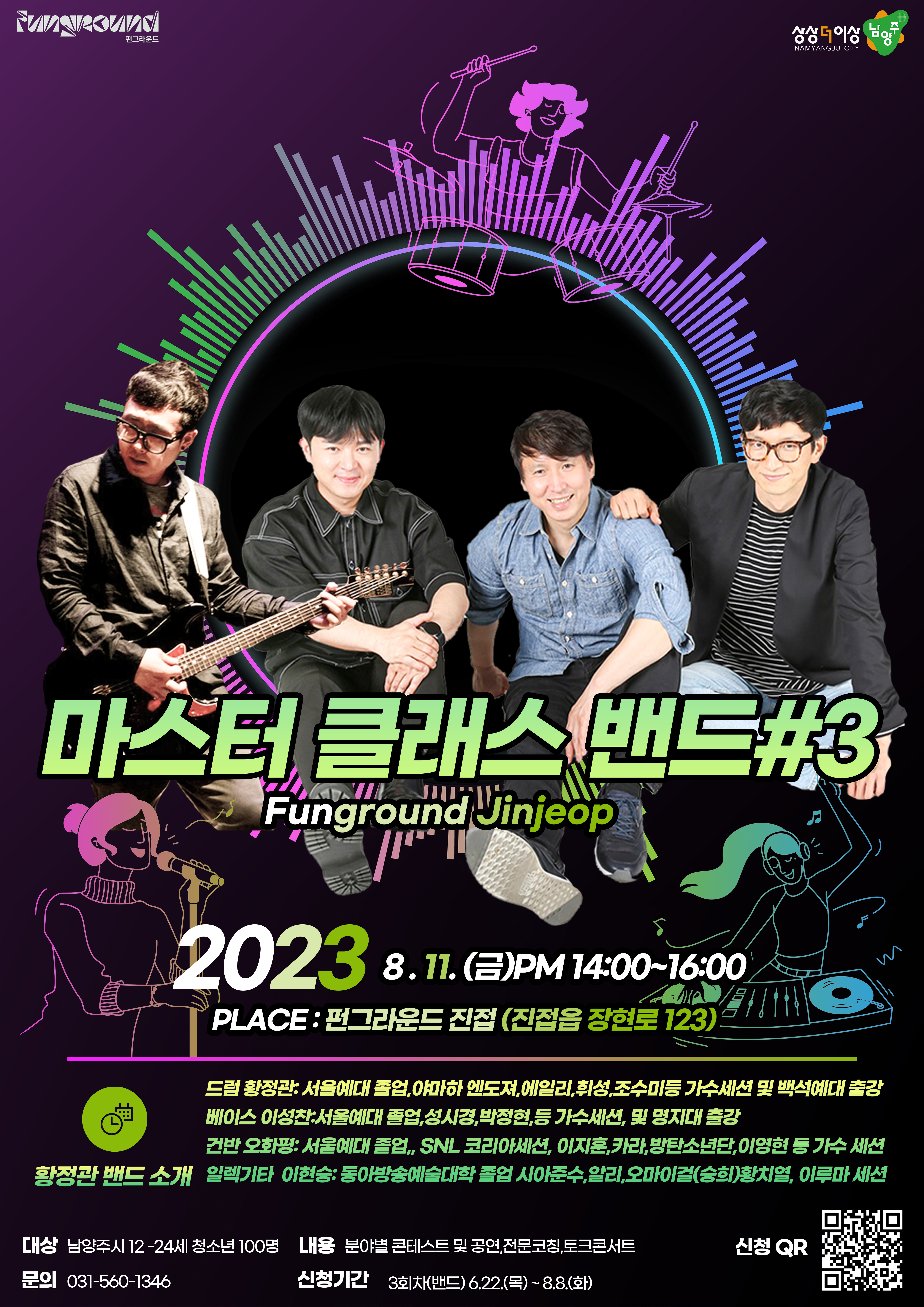 드럼 콘테스트, 콘테스트 진행한 청소년 대상 전문 코칭 및 토크콘서트 진행 * 신청시 연락처 기입 필수! 그룹별 콘테스트(자신있는 곡 1분 공연 후 전문 코칭 진행) 희망하는 청소년은 개별 연락 예정, 별도 곡 준비 필수입니다. |