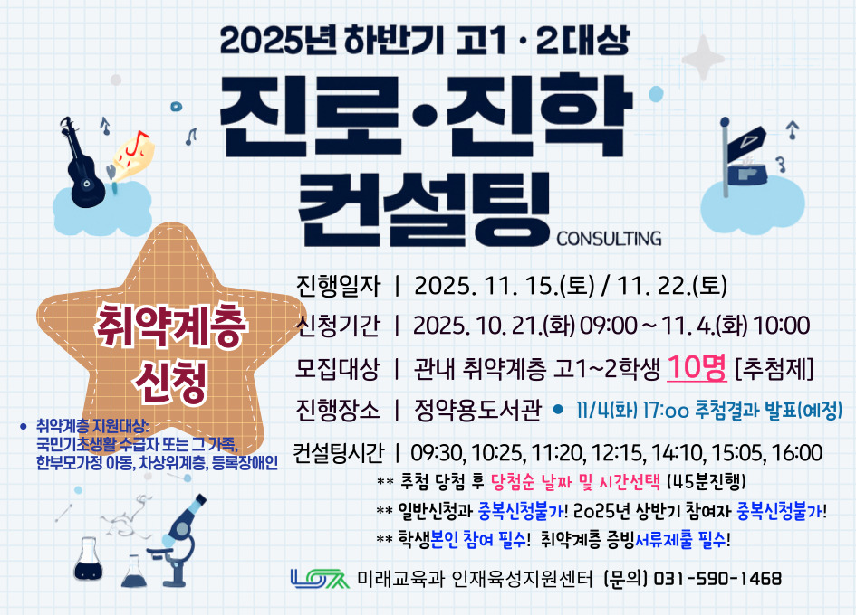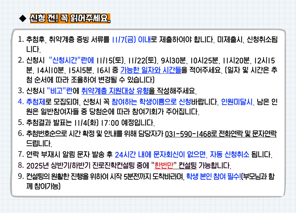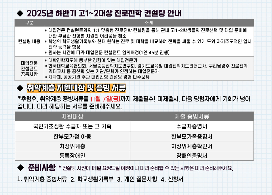 [취약계층신청] 2025년 하반기 고1~2대상 진로진학 컨설팅