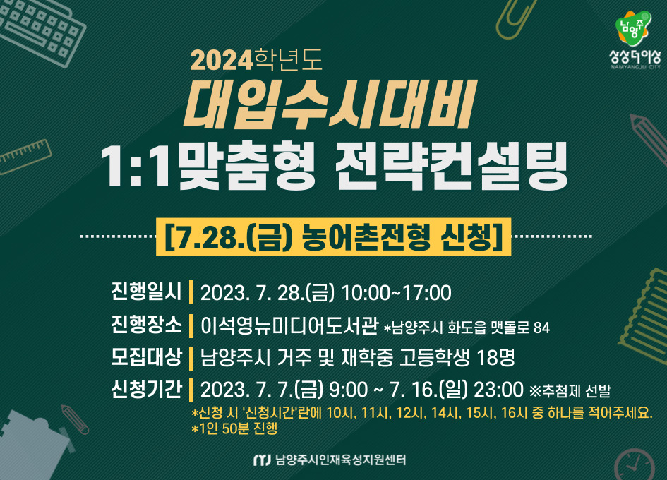 | 프로그램명 | (농어촌전형신청 7/28(금)) 대입수시대비 1:1 맞춤형 전략컨설팅_화도읍 |