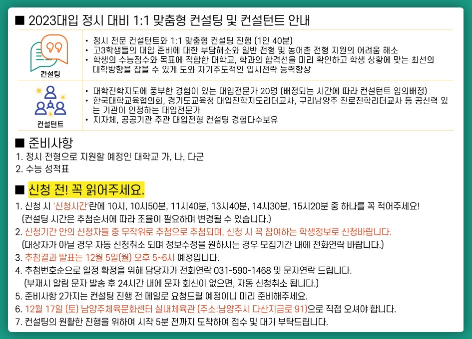 2023대입 정시 대비 1:1맞춤형 컨설팅