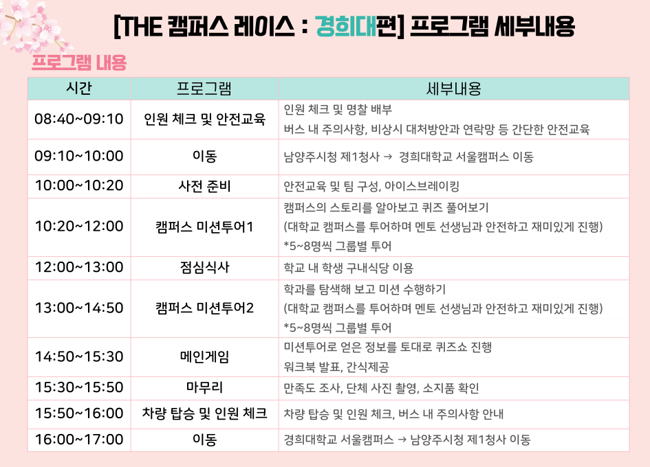 경희대학교 서울캠퍼스(남양주시청 제1청사 광장 집결 후 이동) |