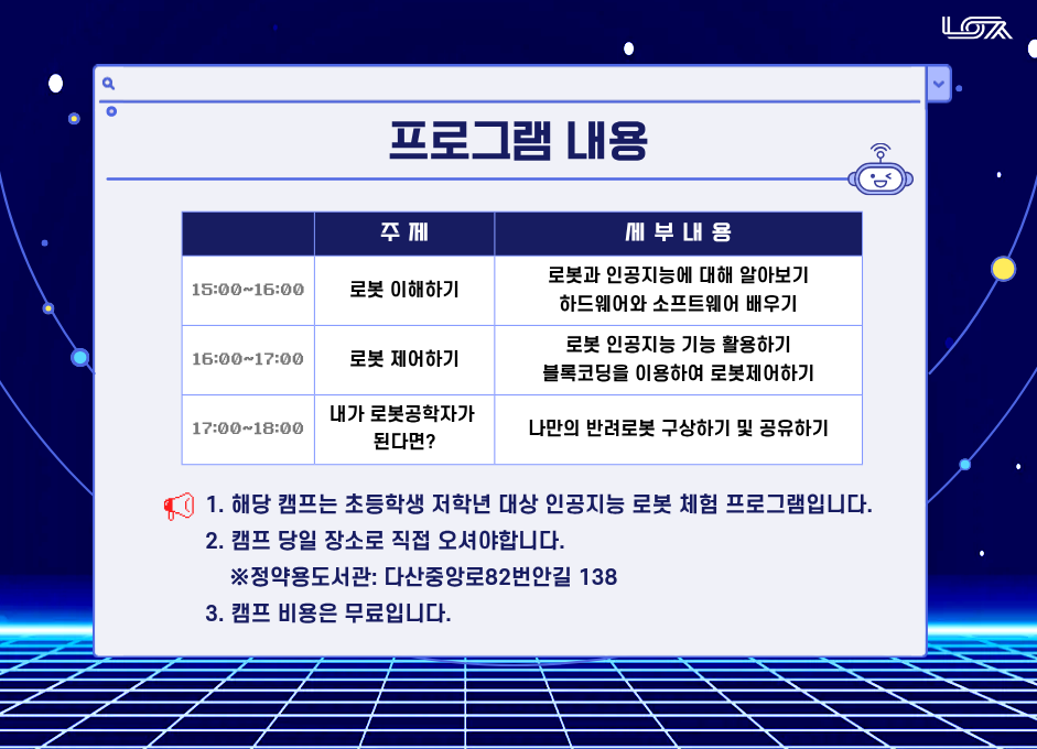 프로그램명 [정약용도서관] 2025년 로봇공학 진로캠프